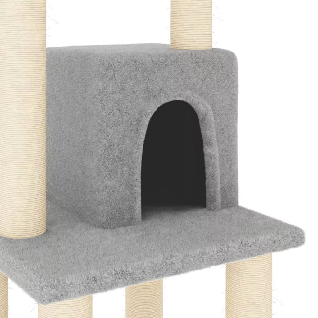 világosszürke macskabútor szizál kaparófákkal 105 cm