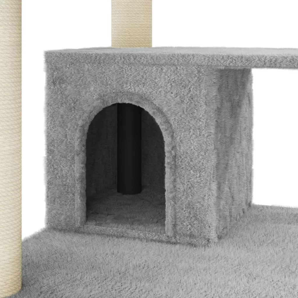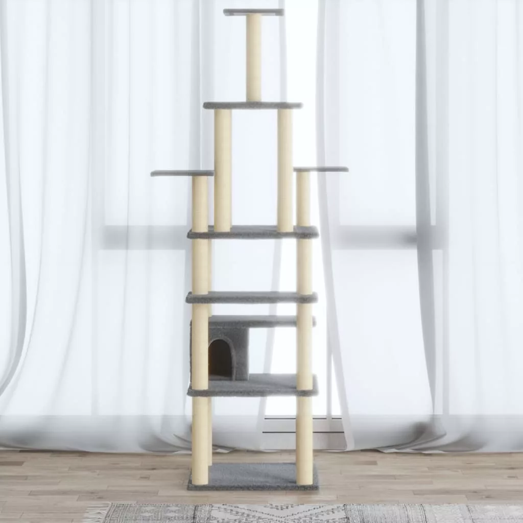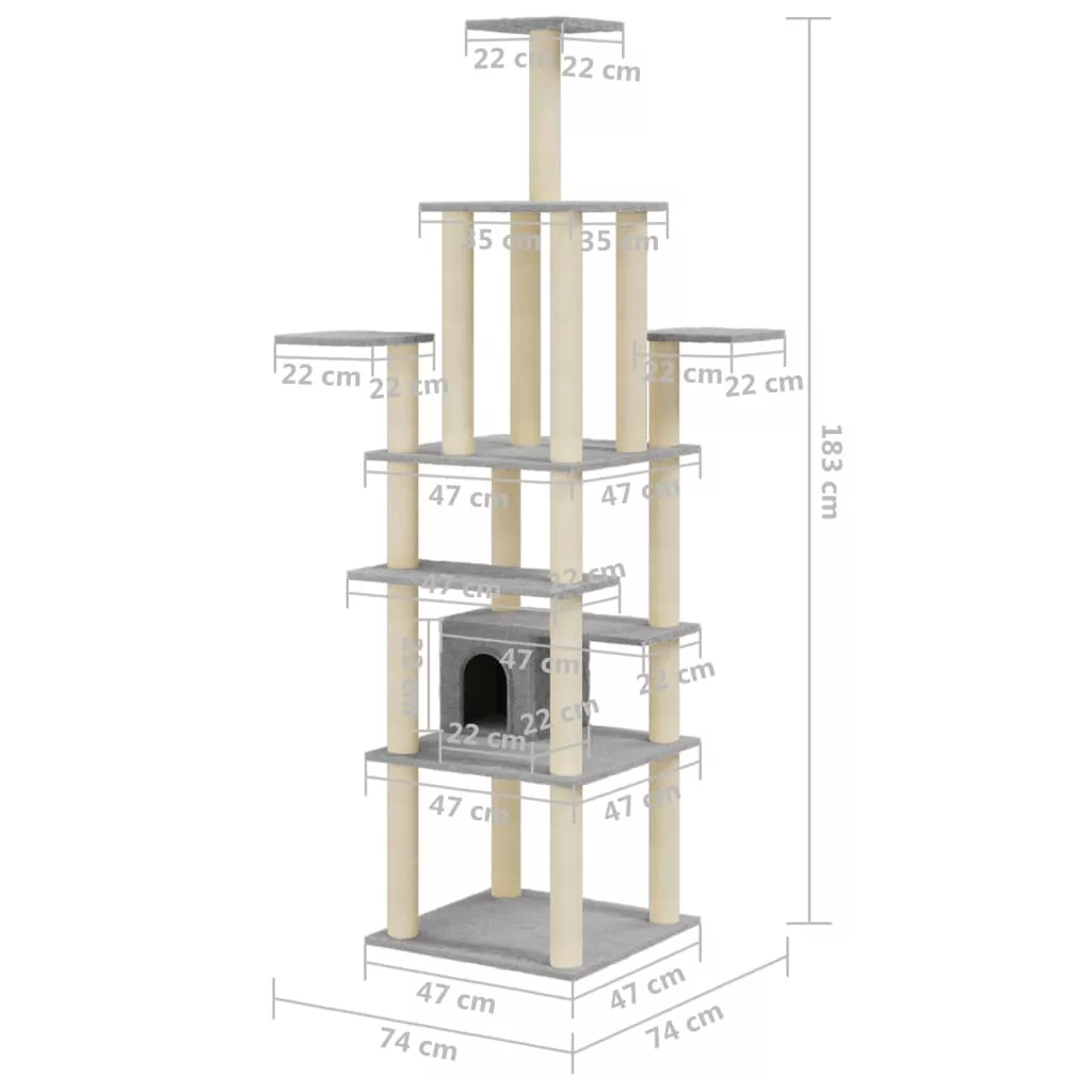 világosszürke macskabútor szizál kaparófákkal 183 cm