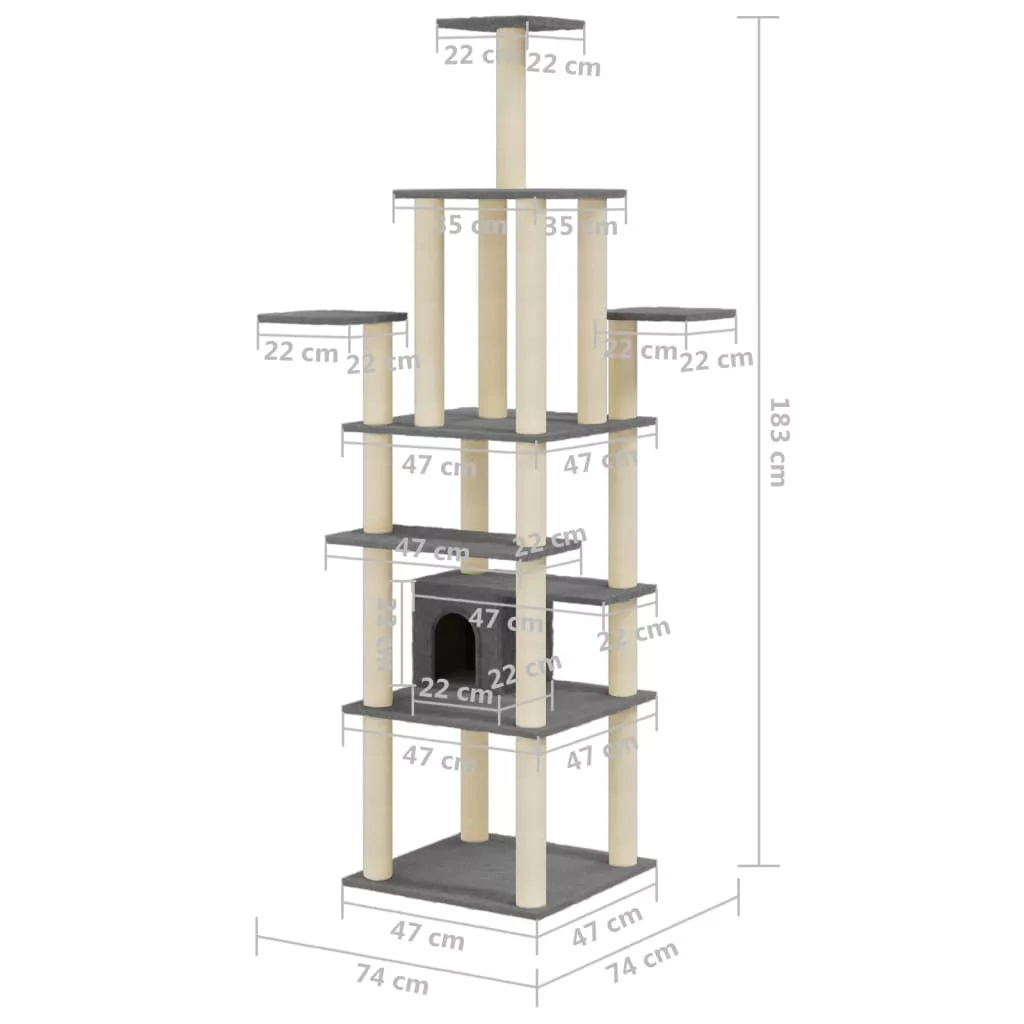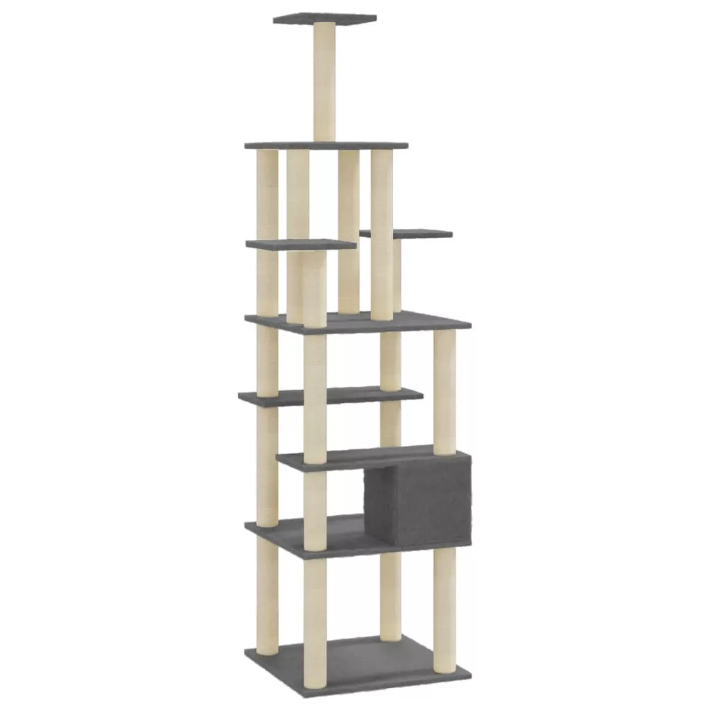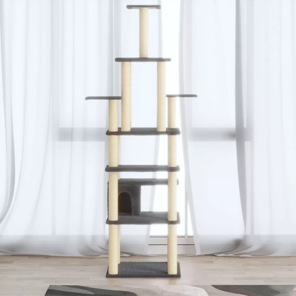 sötétszürke macskabútor szizál kaparófákkal 183 cm