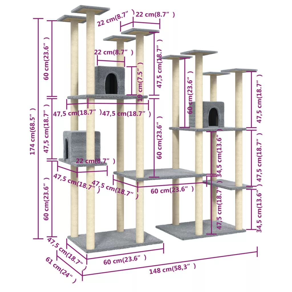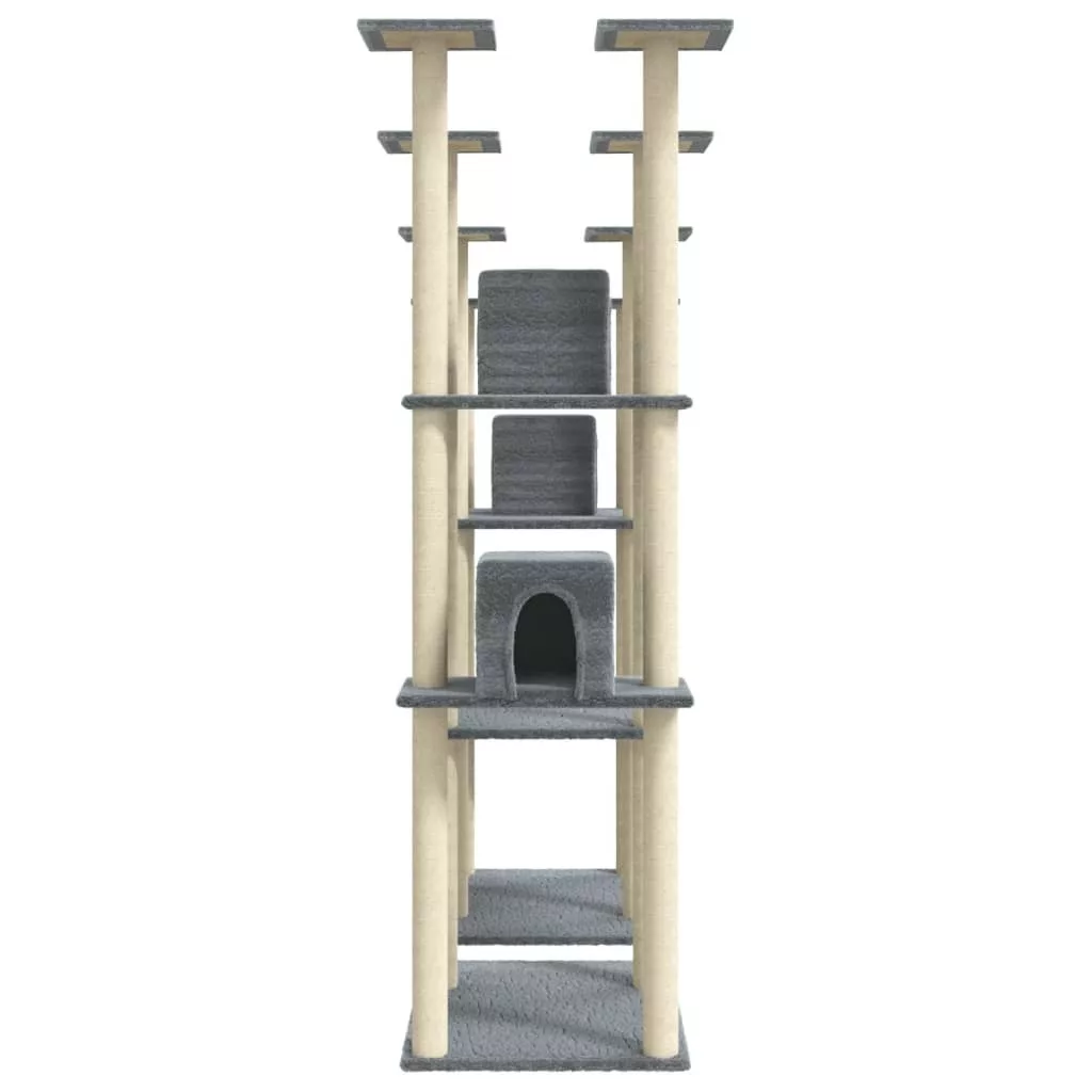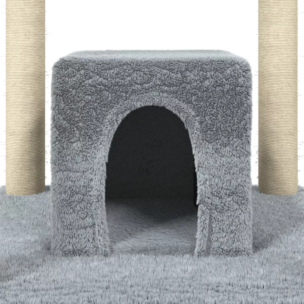 világosszürke macskabútor szizál kaparófákkal 174 cm