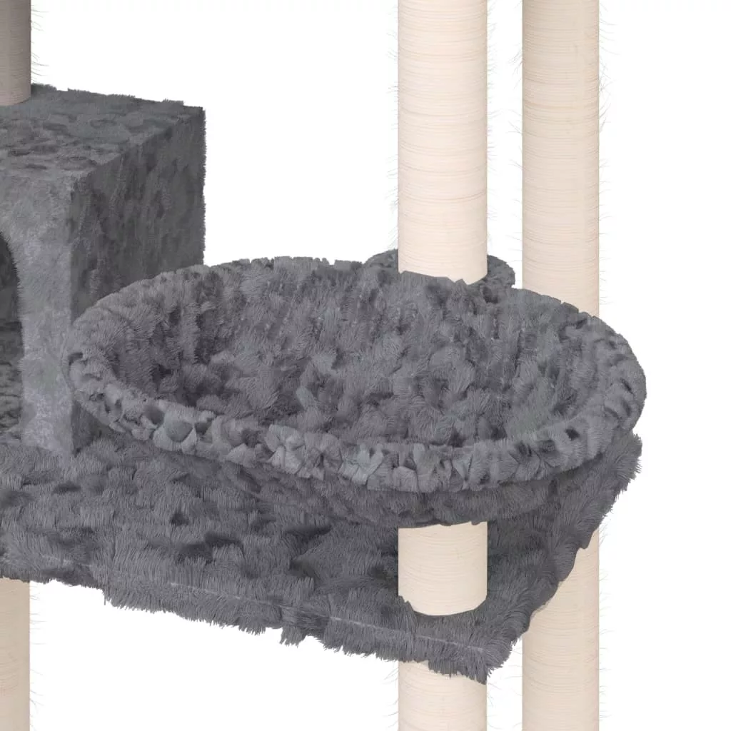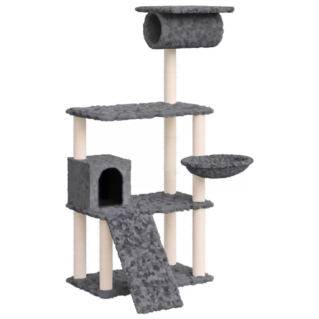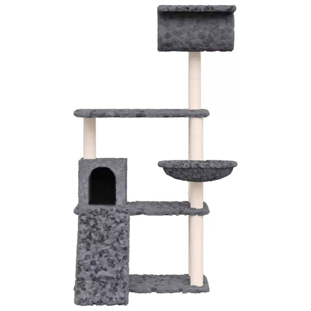 sötétszürke macskabútor szizál kaparóoszlopokkal 131 cm