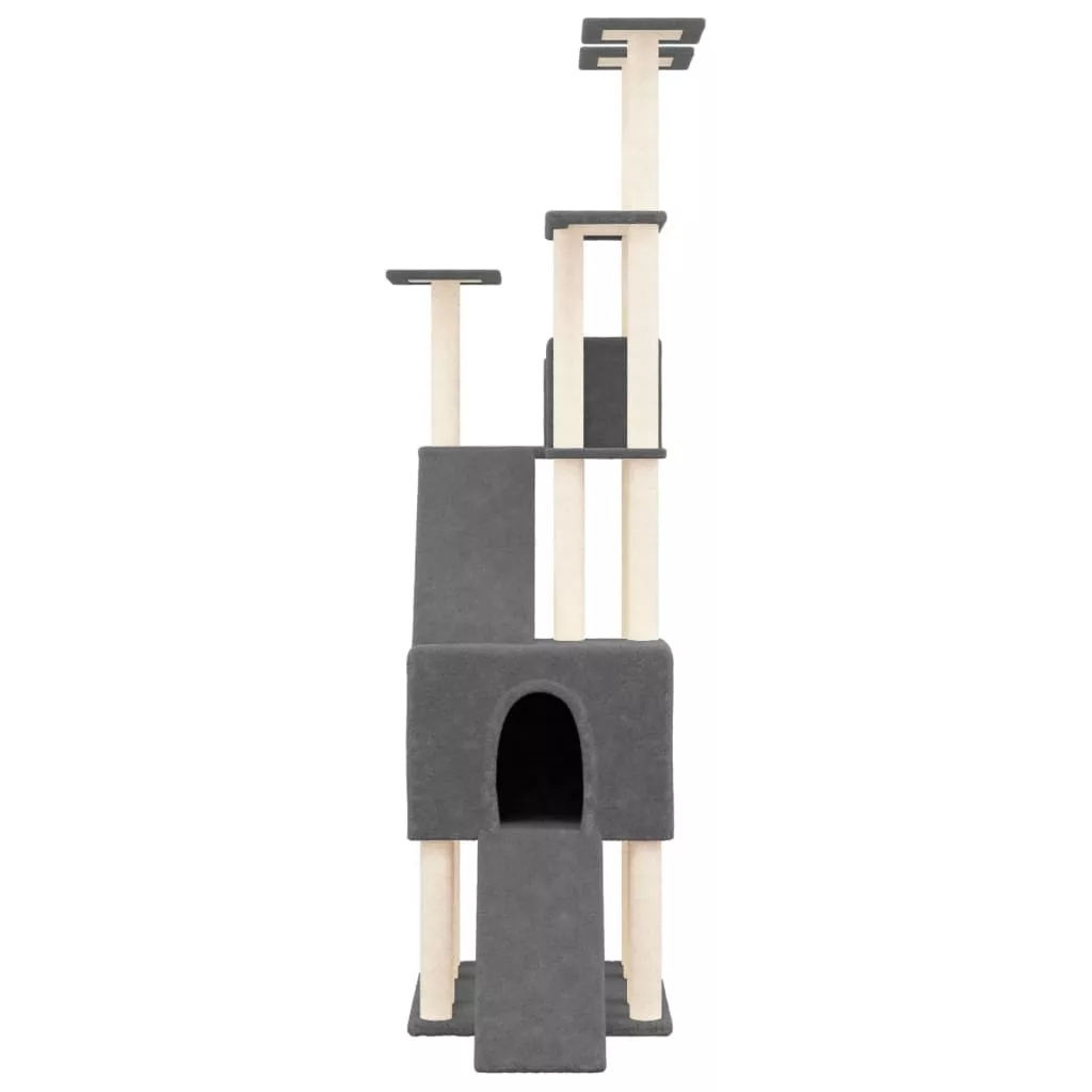 sötétszürke macskabútor szizál kaparófákkal 190 cm