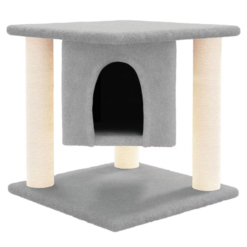 világosszürke macskabútor szizál kaparófákkal 37 cm
