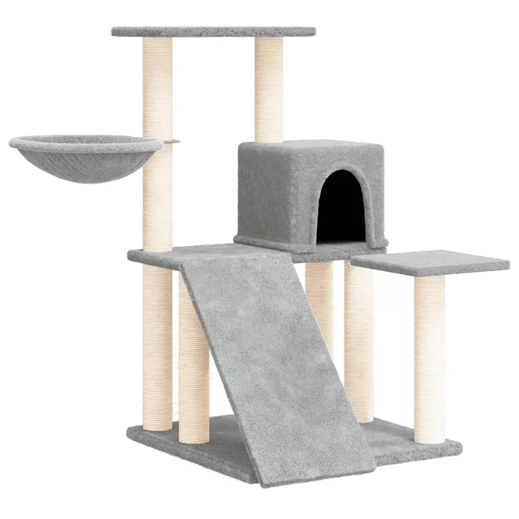 világosszürke macskabútor szizál kaparófákkal 82 cm
