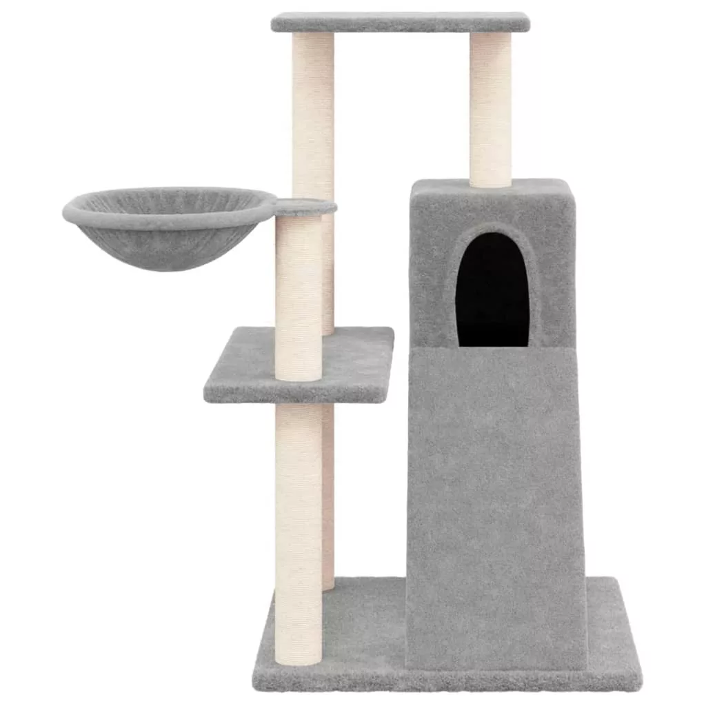 világosszürke macskabútor szizál kaparófákkal 82 cm