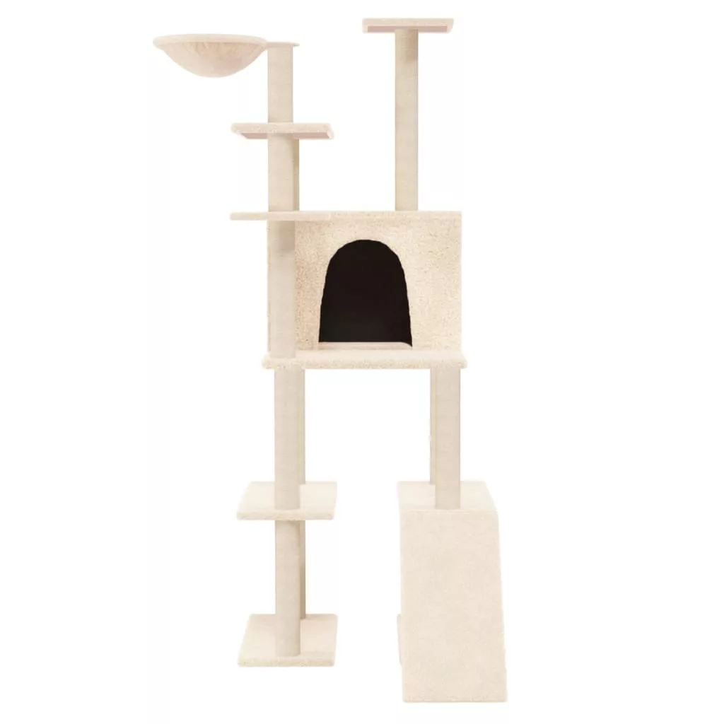 krémszínű macskabútor szizál kaparófákkal 166 cm