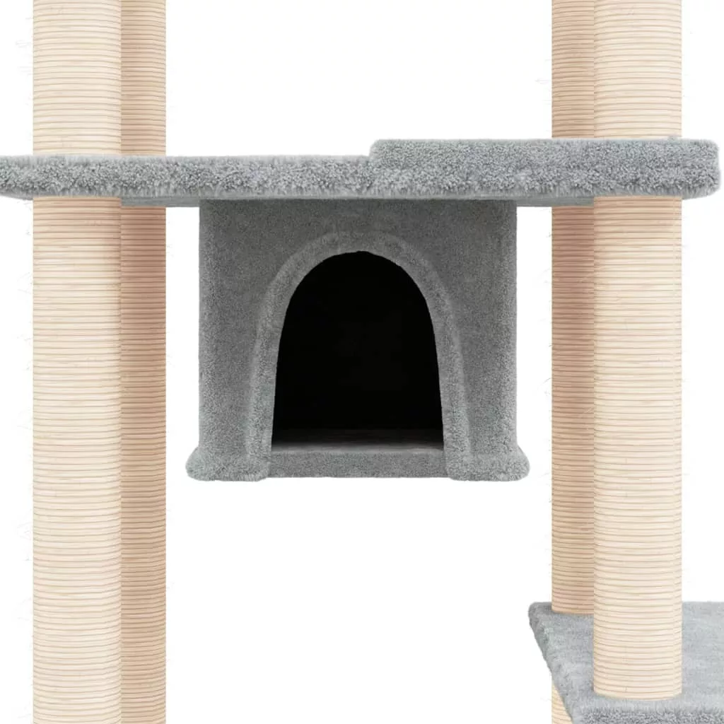 világosszürke macskabútor szizál kaparófákkal 176 cm
