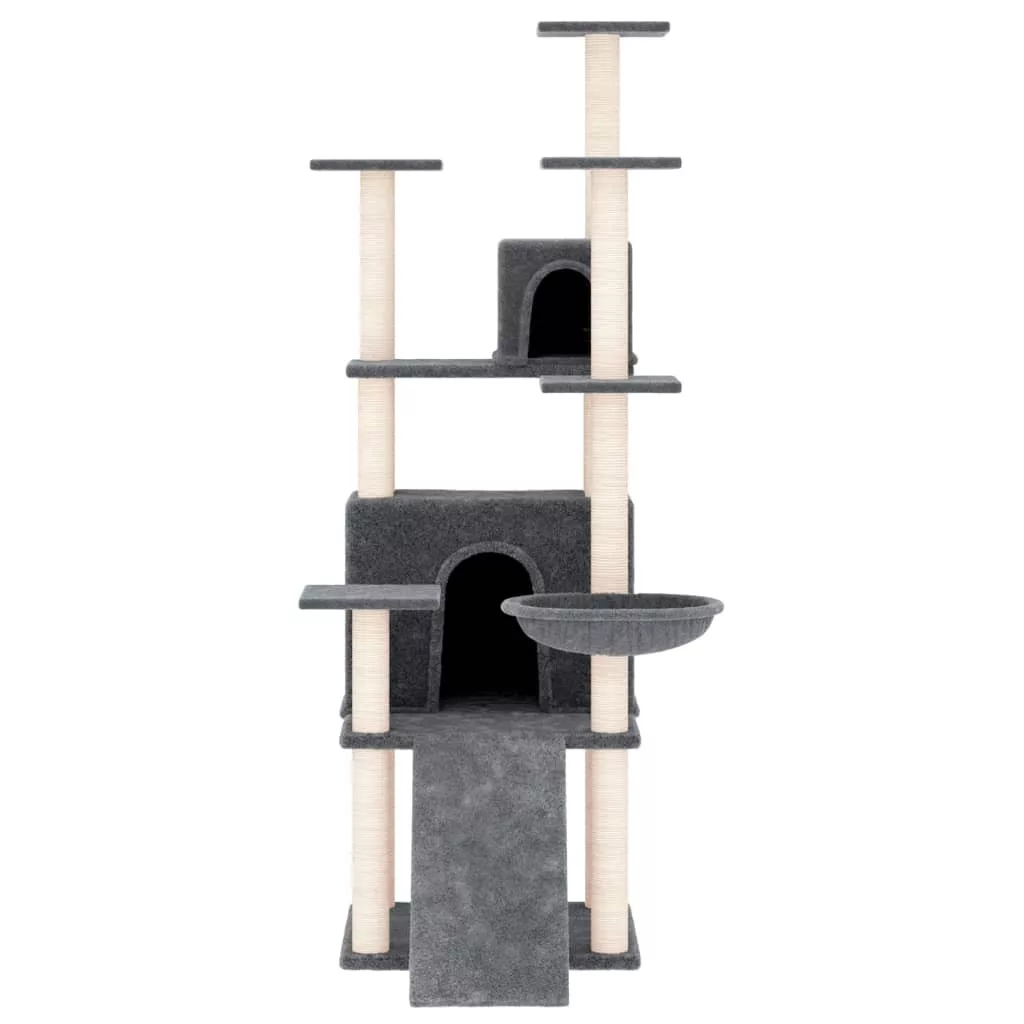 sötétszürke macskabútor szizál kaparóoszlopokkal 154 cm