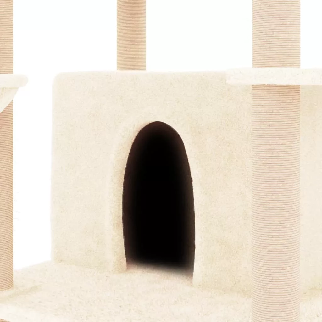 krémszínű macskabútor szizál kaparófákkal 166 cm