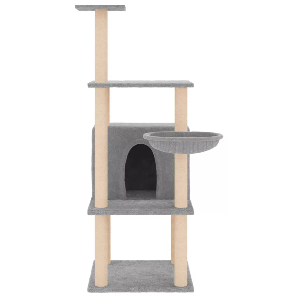 világosszürke macskabútor szizál kaparófákkal 132 cm