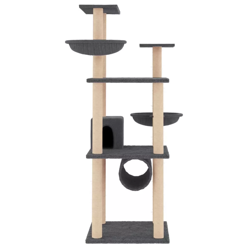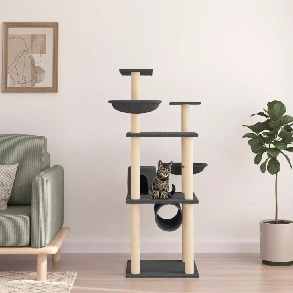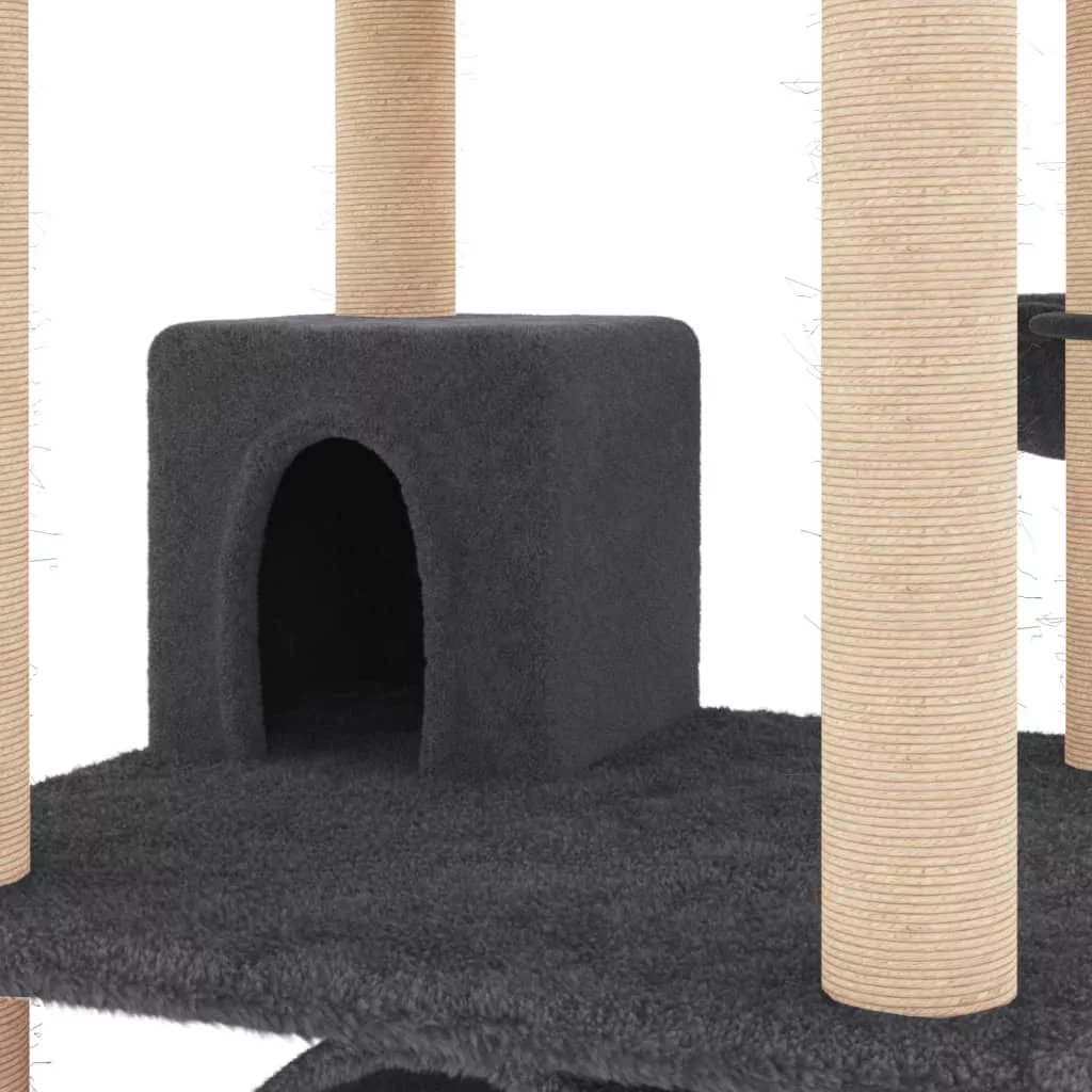 sötétszürke macskabútor szizál kaparófákkal 141 cm