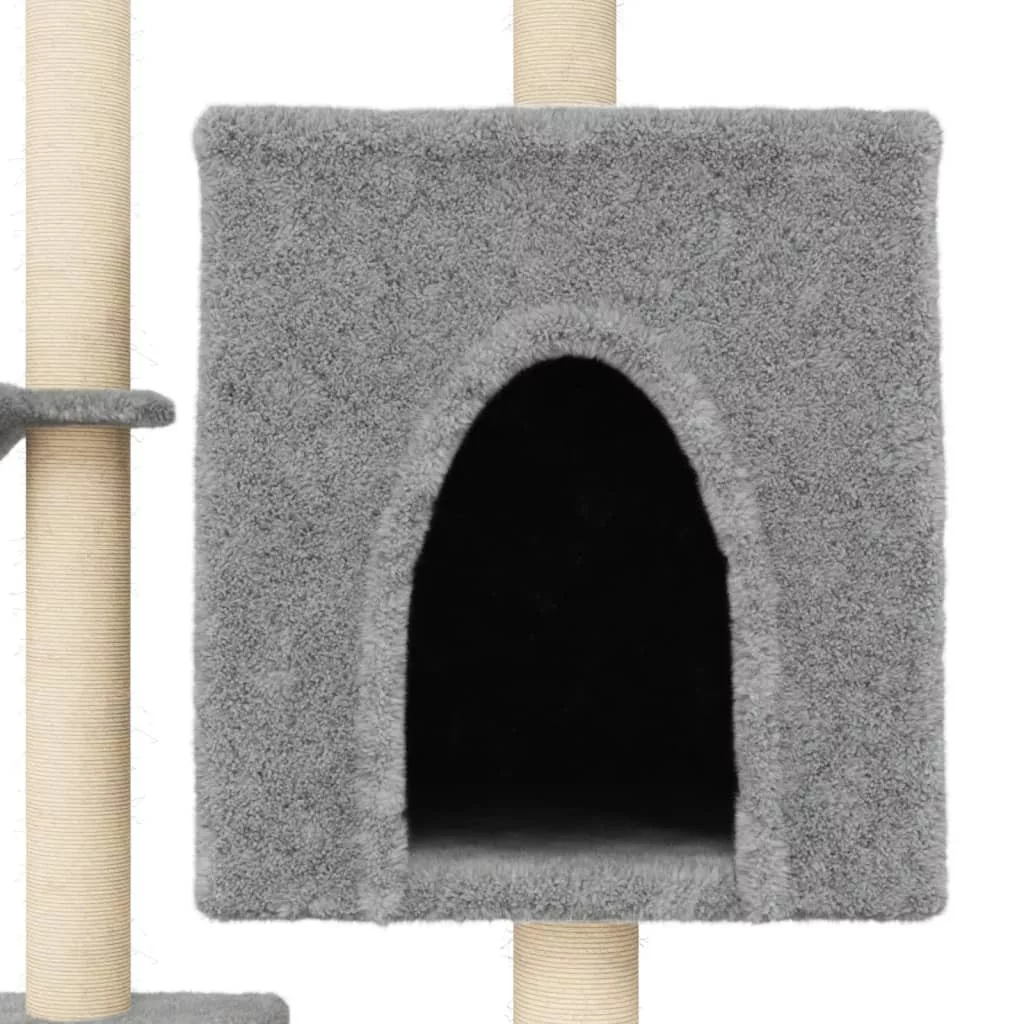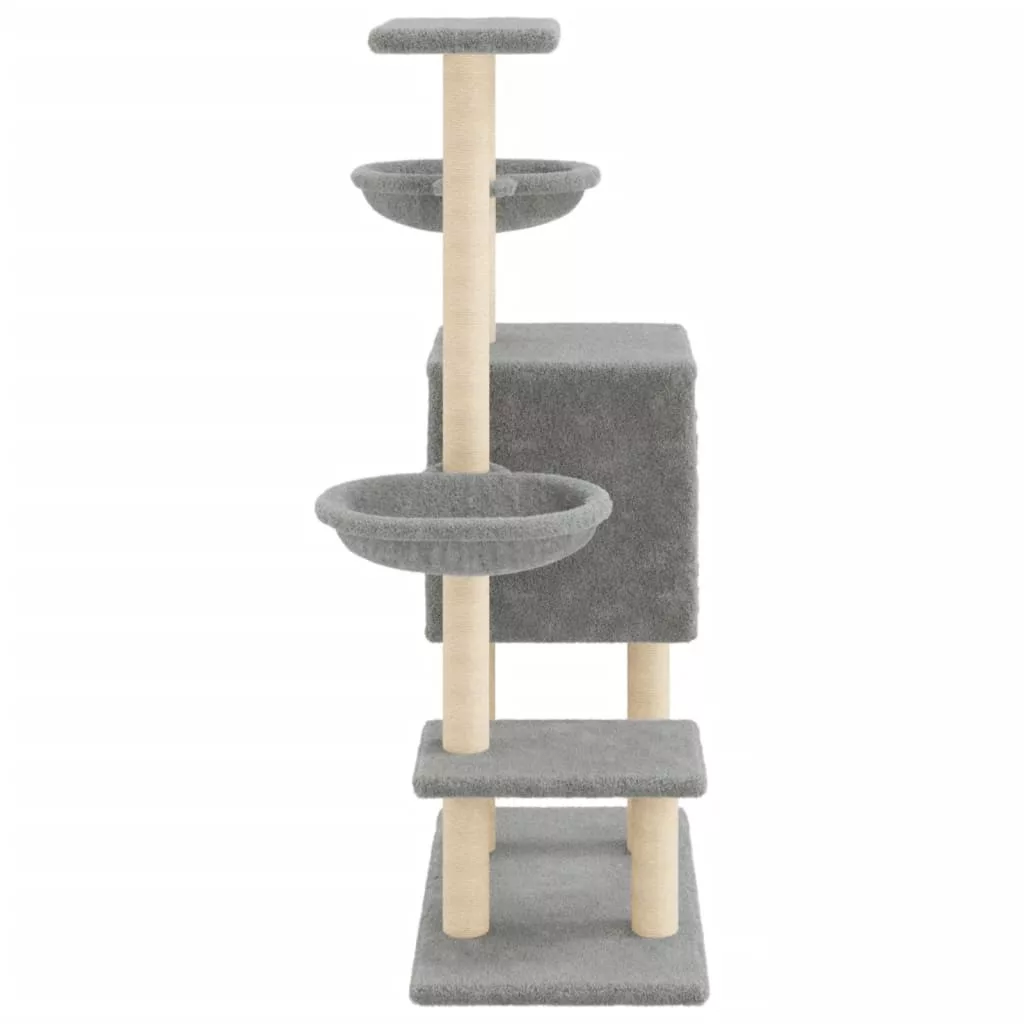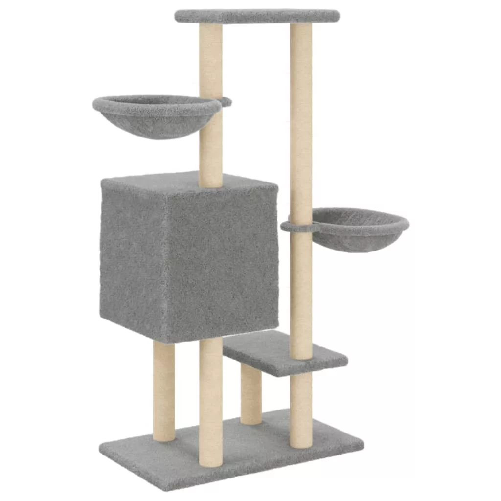 világosszürke macskabútor szizál kaparófákkal 117 cm