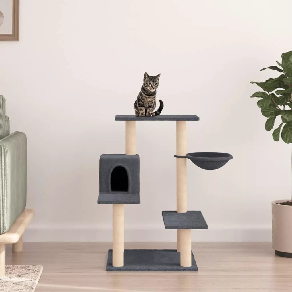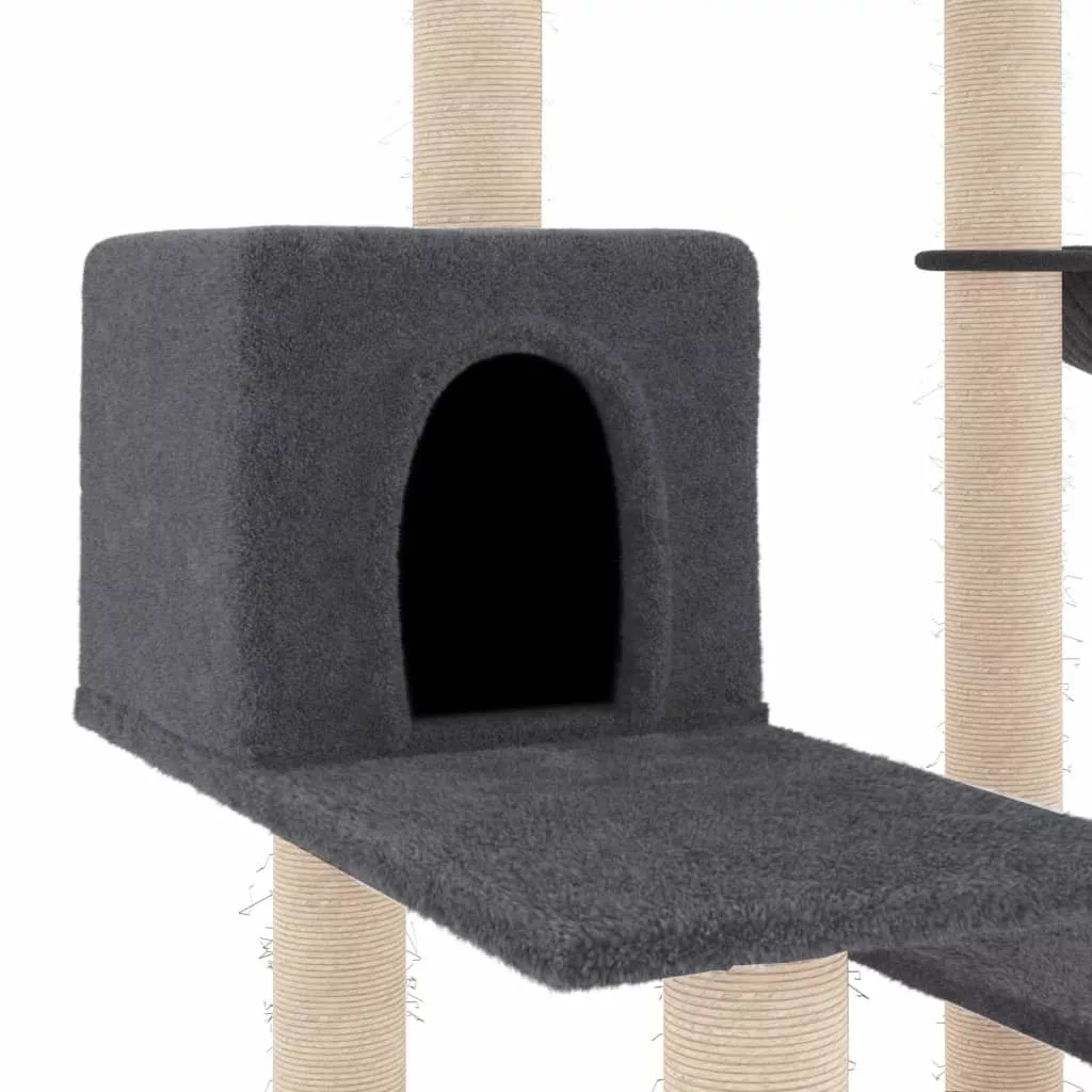 sötétszürke macskabútor szizál kaparófával 82,5 cm