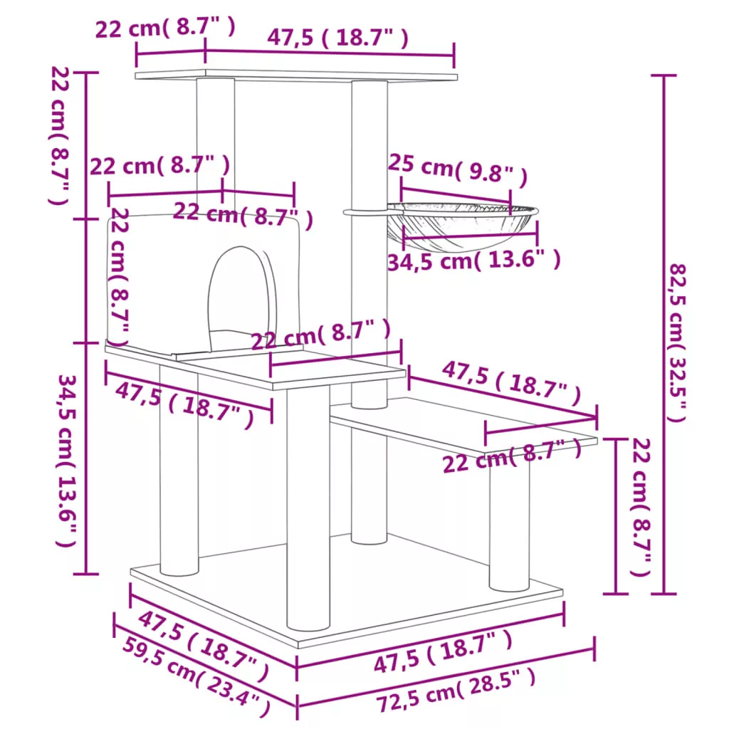 Legyen határtalan szórakozásban részük szeretett cicáinak ezzel az univerzális macskakaparó fával! Minden egyben macskatorony: A többszintes macskabútor egy házzal, egy kosárral és több platformmal lett ellátva, tökéletes helyet biztosítva macskáinak a mászáshoz, kaparáshoz, bujkáláshoz és pihenéshez.Puha plüss anyag: Az extra vastag és puha plüss jól szellőzik, karcálló, rendkívül kényelmes és meleg.Tartós szizáloszlopok: A kaparófa rugalmas és erős, természetes szizáloszlopai tökéletesek szeretett macskái számára, hogy kielégítsék kaparóösztönüket, és ne a bútorait karcolják meg.