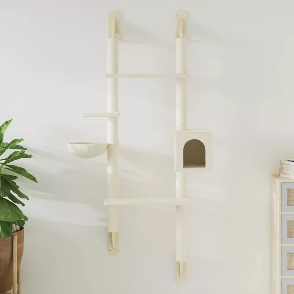 Legyen határtalan szórakozásban részük szeretett cicáinak ezzel a falra szerelhető macskabútorral! Praktikus macskabútor: A többszintes macskabútor kosárral, házzal és emelvényekkel lett ellátva, tökéletes helyet biztosítva macskáinak a mászáshoz, a nézelődéshez és a pihenéshez. Falra szerelhető kialakítás: A macskabútor falra szerelhető, nem foglal helyet, így tökéletes kis vagy modern helyiségekbe, hatékony helytakarítási megoldás. Masszív felépítés: A falra szerelhető macskafa erős háromszög alakú támasztékokkal van megerősítve a biztonság és a stabilitás érdekében, lehetővé téve, hogy macskája nyugodtan játsszon és pihenjen. Tartós szizáloszlop: A kaparófa rugalmas és erős, természetes szizáloszlopa tökéletes szeretett macskái számára, hogy kielégítsék kaparóösztönüket, és ne a bútorait karcolják meg.Puha plüss anyag: Az extra vastag és puha plüss jól szellőzik, karcálló, rendkívül kényelmes és meleg. Jó tudni:A falba fúráshoz elektromos szerszámokra van szükség.