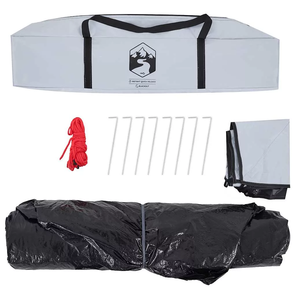 Ez a modern megjelenésű családi sátor megvéd a kellemetlen időjárástól, és kényelmes helyet biztosít a kalandokhoz. Teljesen vízálló kialakítás: Ez a kempingsátor, amely poliészterből készült poliuretán bevonattal, víz- és szélálló. A ragasztott varratok hatékonyan megakadályozzák az esővíz beszivárgását, a nagy teherbírású sátoralj pedig elősegíti, hogy a belső tér száraz és kényelmes maradjon.Fehér sötétítő szövet: A speciálisan kialakított sátorszövet 99%-ban blokkolja a napfényt, így hűvösebb és kényelmesebb alvási környezetet biztosít. Mondjon búcsút a kora reggeli, zavaró napfénynek, és élvezze a pihentető éjszakai alvást.Gyorskioldó rendszer: A gyorskioldó rendszerrel könnyedén felállíthatja a sátrat! Fektesse le a sátrat, helyezze egymásba az előre összeszerelt rudakat, amíg a helyükre nem kattannak, és már kész is!Levehető esővédő: A levehető esővédő a sátor tetejére rögzíthető az időjárás elleni védelem és a magánélet védelme érdekében.Jó szellőzés és szúnyogok elleni védelem: A hálós falak nemcsak kiváló szellőzést biztosítanak, de hatékonyan távol tartják a rovarokat is, kényelmes és problémamentes élményt biztosítva a használói számára.Kényelmesen hozzáférhető elektromos vezetékek: Az E-portnak köszönhetően egyszerűen csatlakoztathat a sátorhoz egy külső áramforrásból származó hosszabbítót. Figyelem:Tartson távol minden láng- és hőforrást ettől a termékszövettől. Figyelmeztetés Tartson távol minden láng- és hőforrást ettől a termékszövettől. A termék nem alkalmas olyan időjárási körülményekre, mint az erős szél, a hóesés, és a szélsőséges időjárási viszonyok.