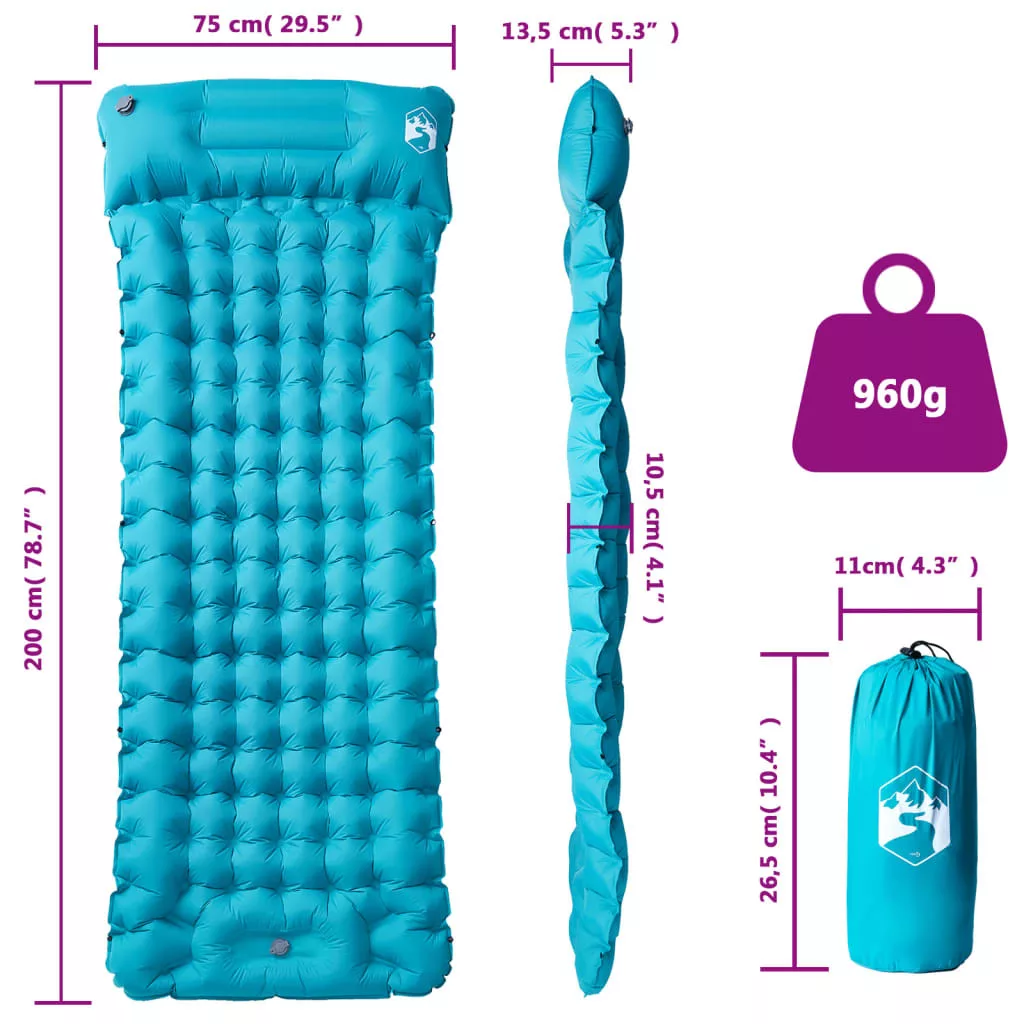 1 személyes kék önfelfújó kempingmatrac párnával