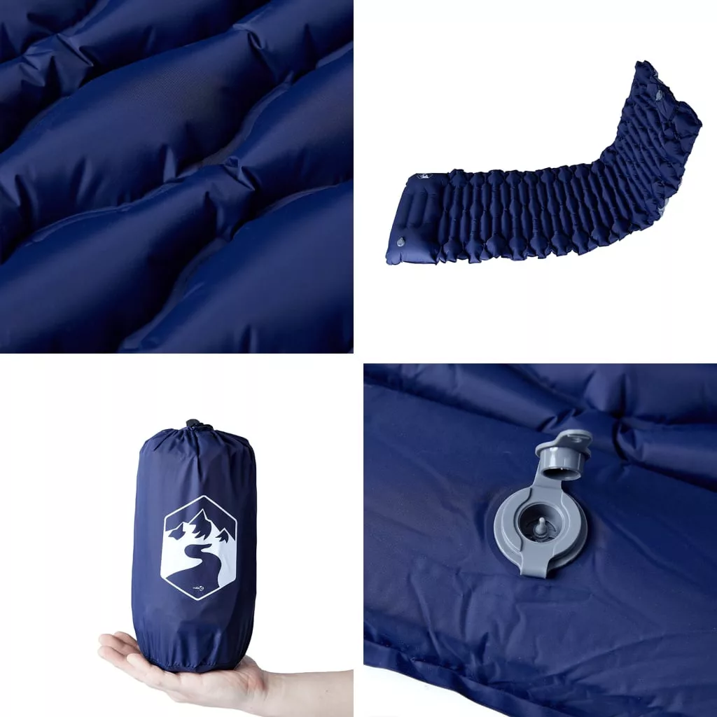 1 személyes tengerészkék önfelfújó kempingmatrac párnával