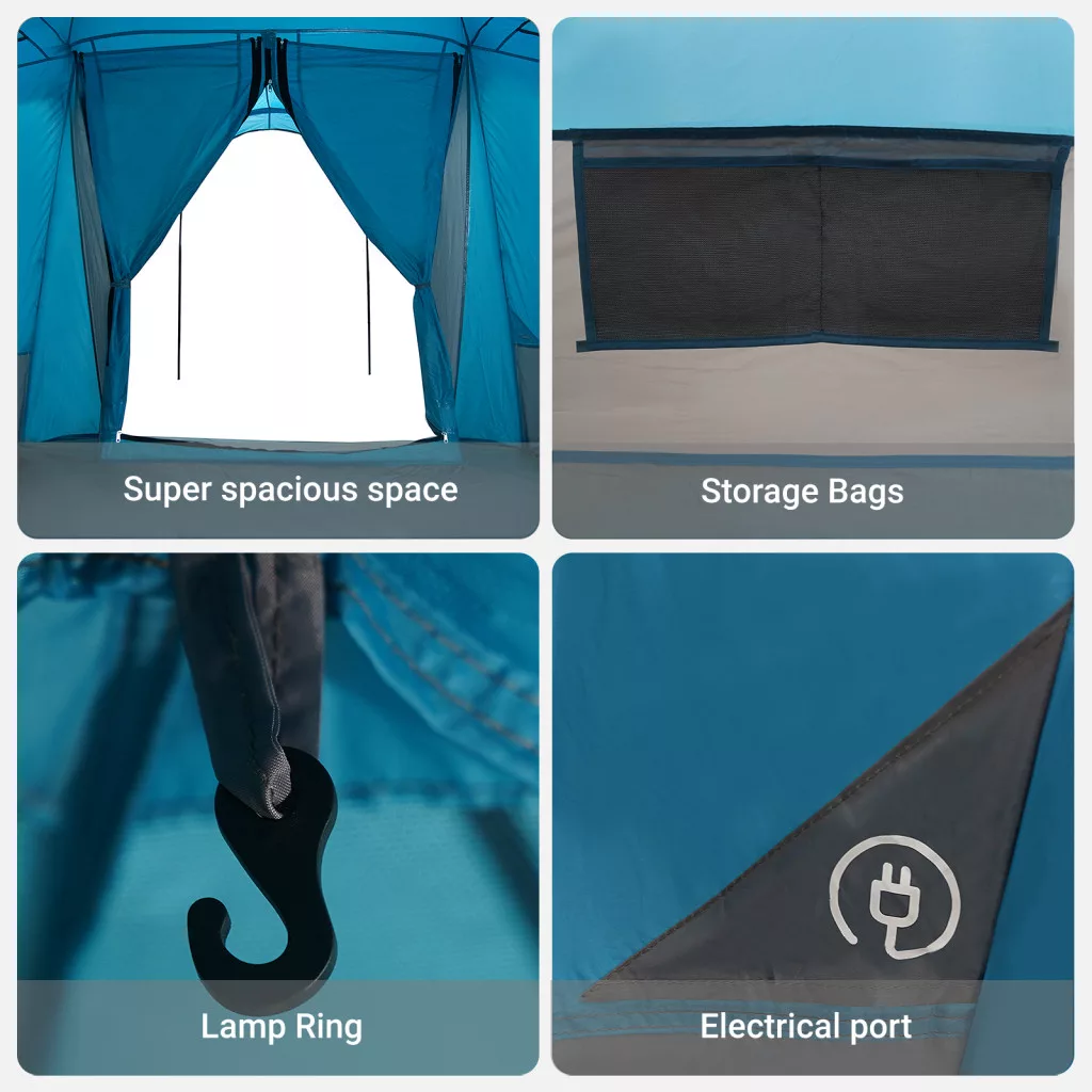 Családi sátor ablakkal, kupola, kék, 4 személyes, vízálló