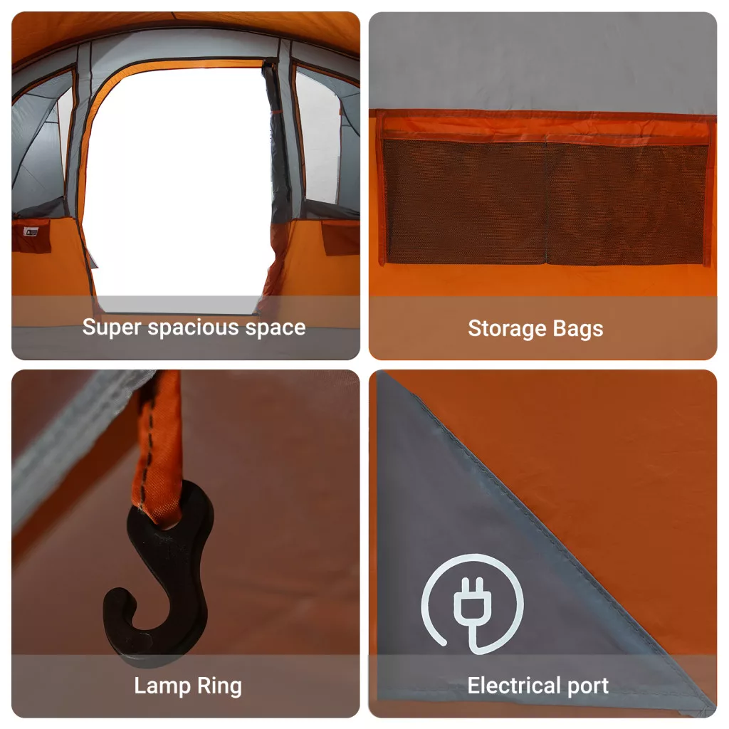 Családi Sátor Ablakokkal, Alagút Grafit és Narancs 8 Fős Vízálló