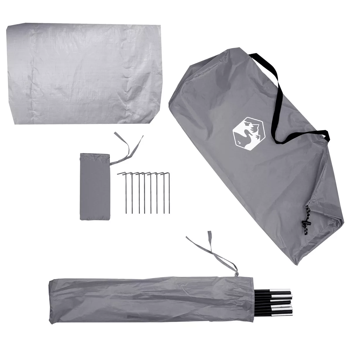 A szállítás tartalma: 1 x Sátra, 2 x FRP oszlop (452 cm), 5 x FRP oszlop (82 cm), 4 x Csomagoló zsinór (250 cm), 8 x Cövek, 1 x Hordtáska<\li>