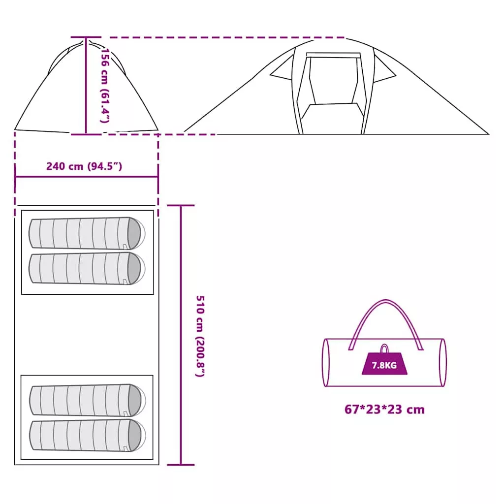 Sátor tetővel Egyéb Zöld és Fekete 510 x 240 x 156 cm Poliészter