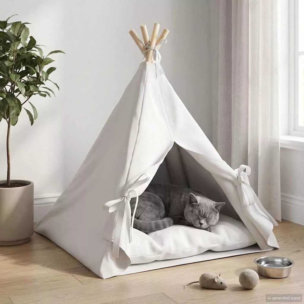 Kiskedvenc teepee párnával Fehér 60 x 60 x 70 cm Poliészter