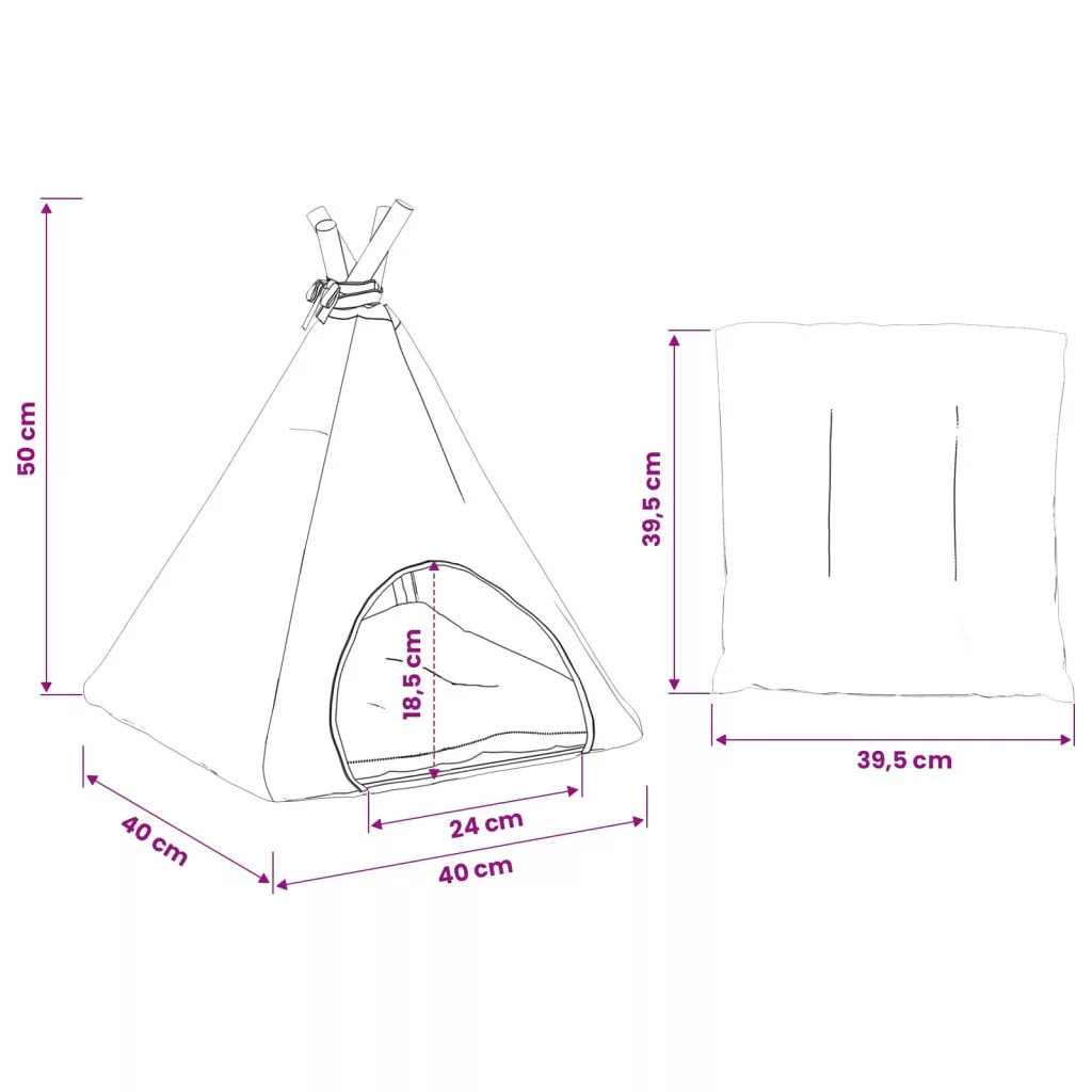 Kiskedvenc teepee párnával Fehér és Szürke 40 x 40 x 50 cm