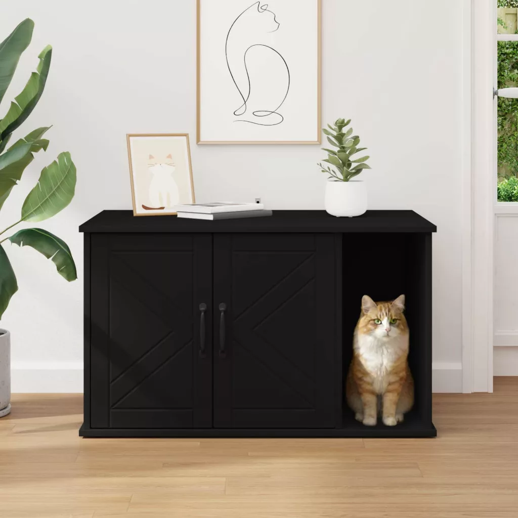 Macska Ház Fekete 85 x 55 x 50 cm Faanyag