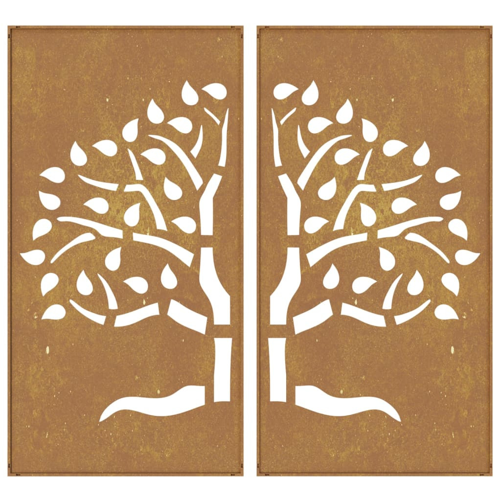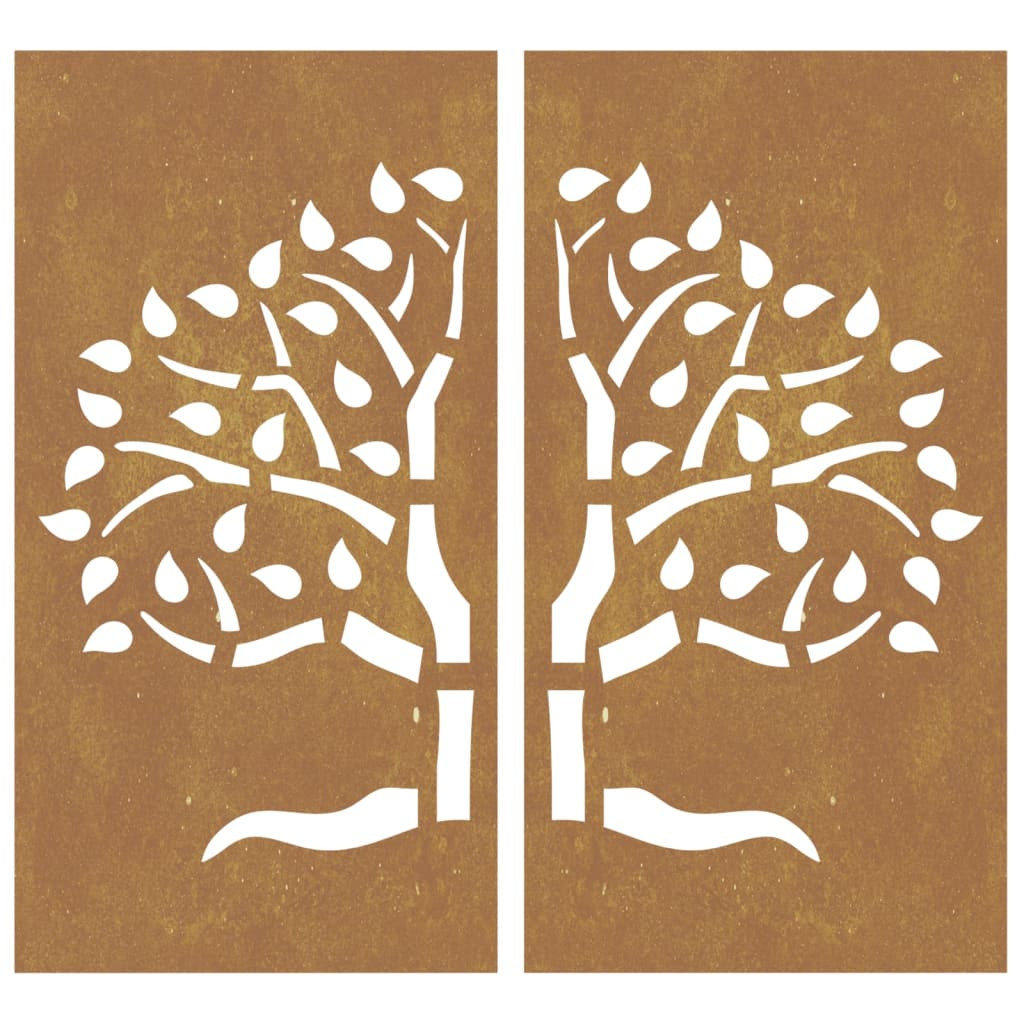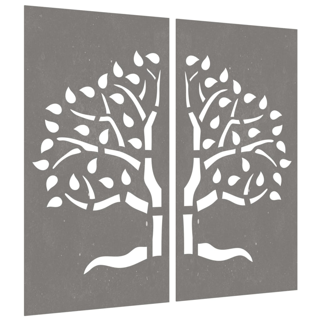 Varázsoljon egy üres falat vagy kerítést remekművé ezekkel a kerti faldíszekkel. Tartós anyag: corten acél, más néven időjárásálló acél. Ez természeténél fogva korróziógátló hatású. Az első légköri hatásnak kitéve rozsdás védőréteget hoz létre a korrózió ellen. Így nem kell festeni. Ezáltal megtakaríthatja a karbantartási és javítási költségeket. A corten acél jellegzetes barna színe minden bizonnyal szemet gyönyörködtető lesz. Végül pedig, az időjárásálló acél rendkívül tartós, és kiállja az idő próbáját.Kiváló dizájn: A fém faldísz üreges fa mintás, természetes hangulatot teremtve a kertben.Könnyű felszerelés: A kültéri faldísz könnyen felszerelhető a hátoldalon található rögzítőfuratokkal. Jó tudni:Ez a termék még nem rozsdásodott és normál fémszínű, amikor megkapja, de idővel rozsda fog keletkezni rajta. Felgyorsíthatja a rozsdásodási folyamatot, ha szappanos vízzel és sós vízzel permetezi be. Annak érdekében, hogy ruhái foltmentesek maradjanak, kerülje az érintkezést a kialakuló rozsdaréteggel.