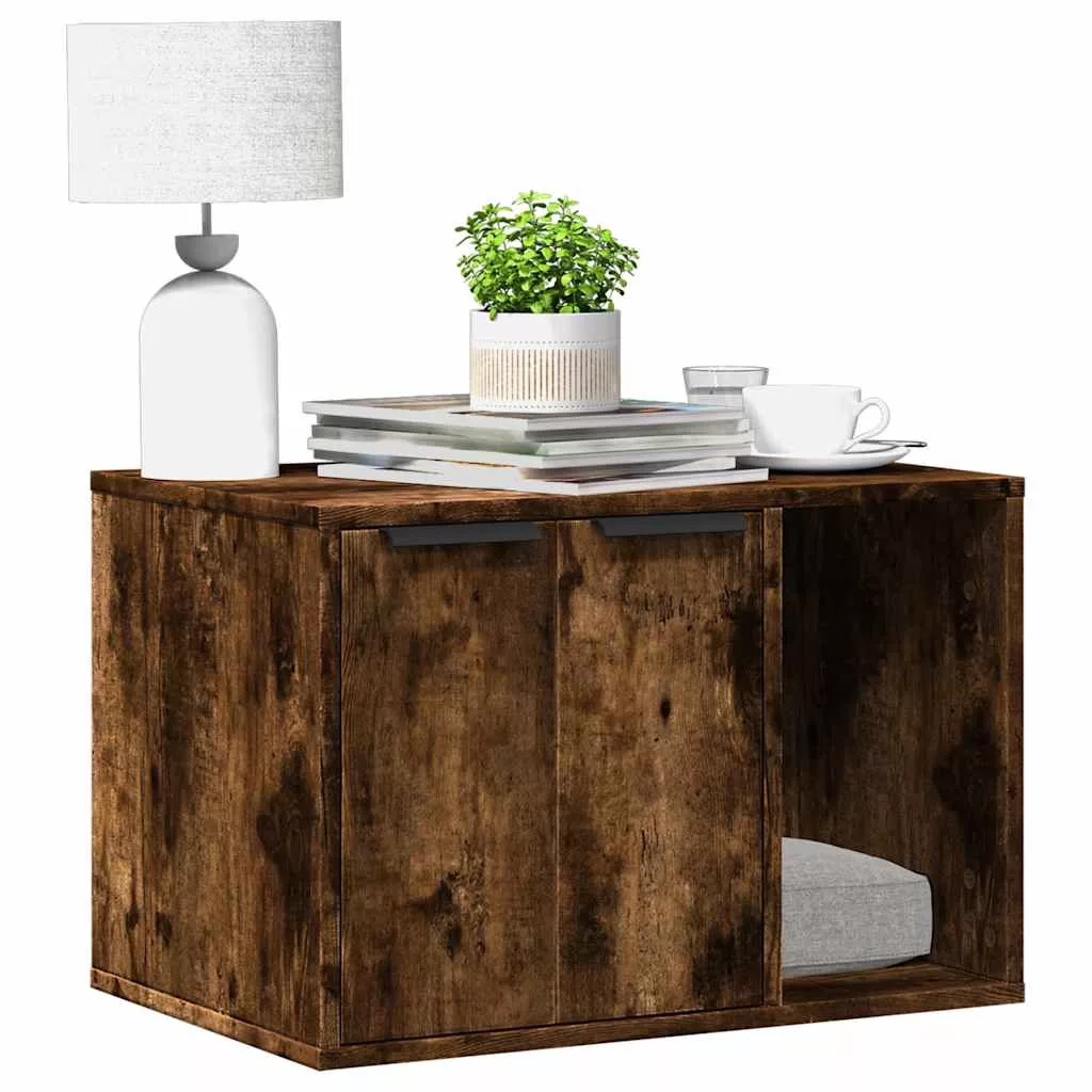 füstös tölgy színű szerelt fa macskaalomdoboz 60 x 40 x 40 cm
