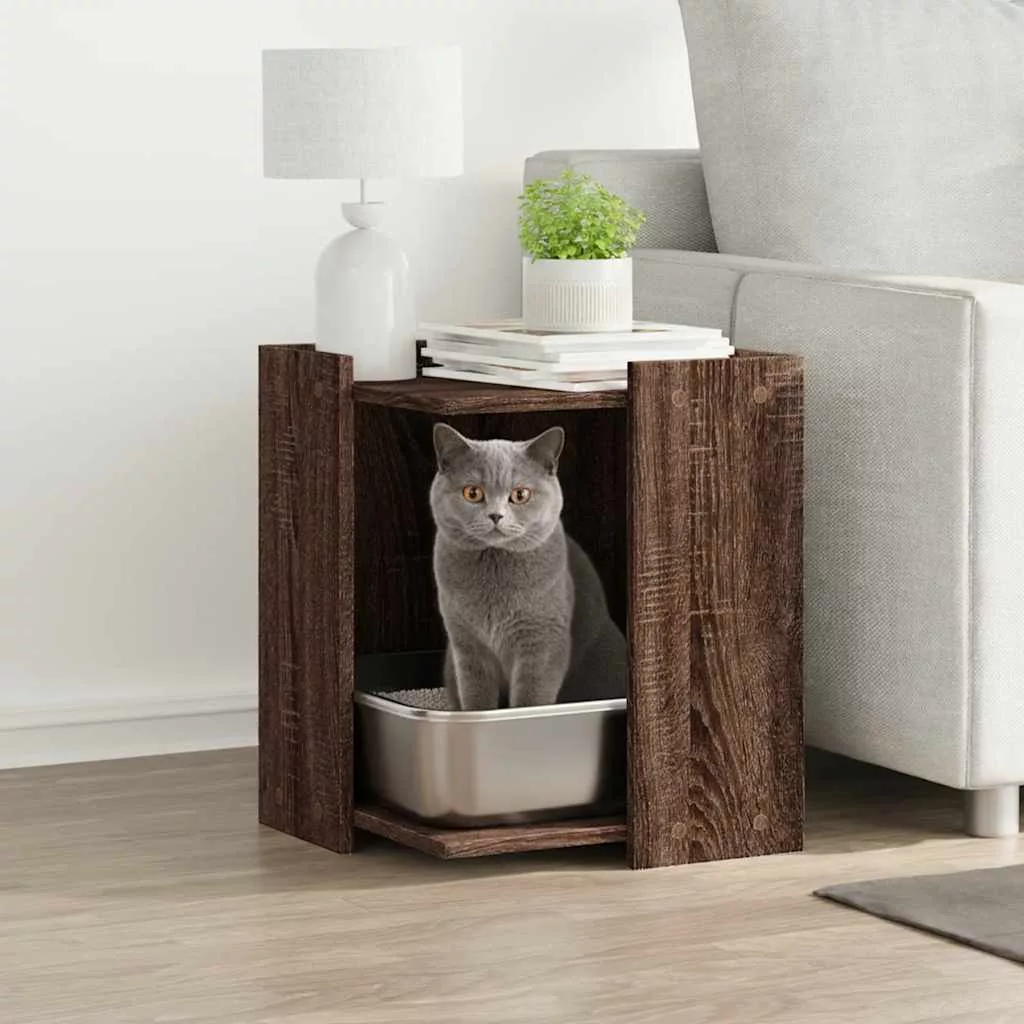 barna tölgy színű szerelt fa macskaalomdoboz 42 x 42 x 51 cm