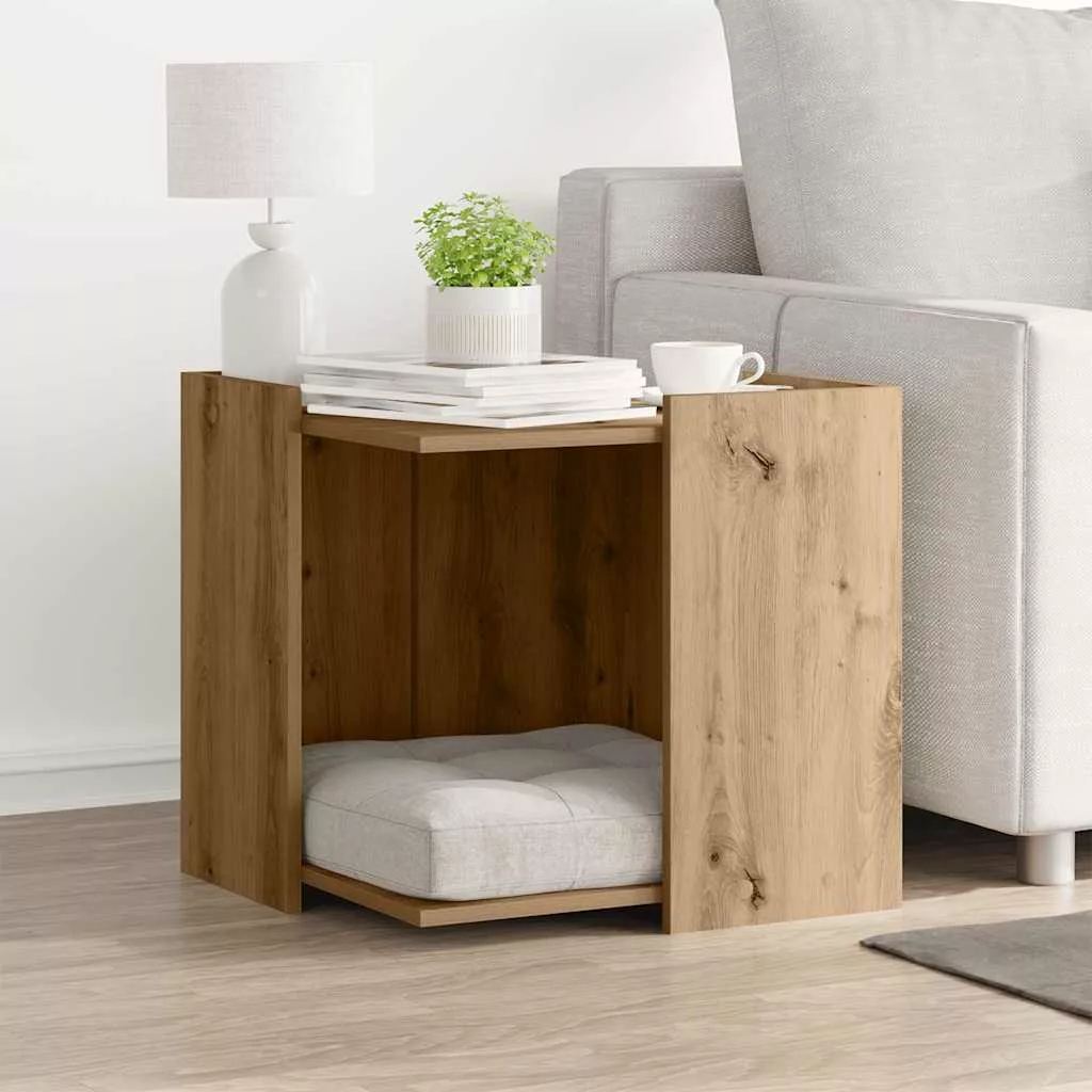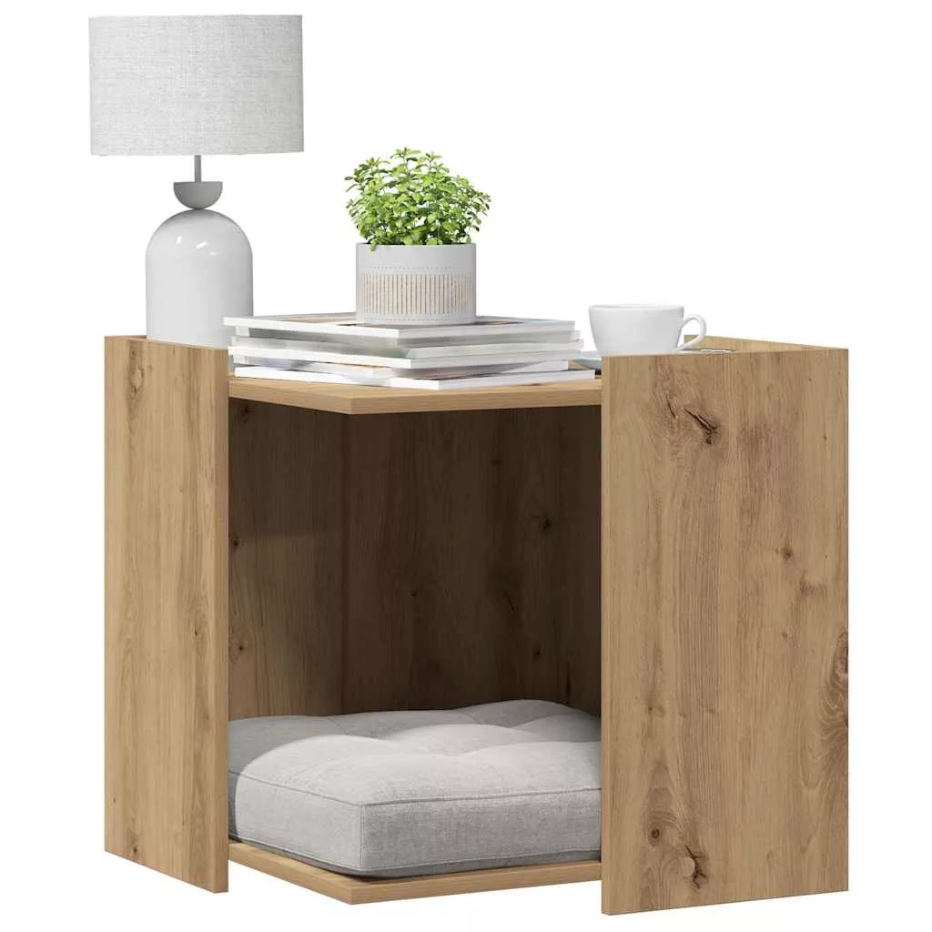 kézműves tölgy színű szerelt fa macskaalomdoboz 53 x 53 x 51 cm