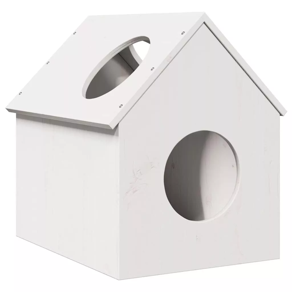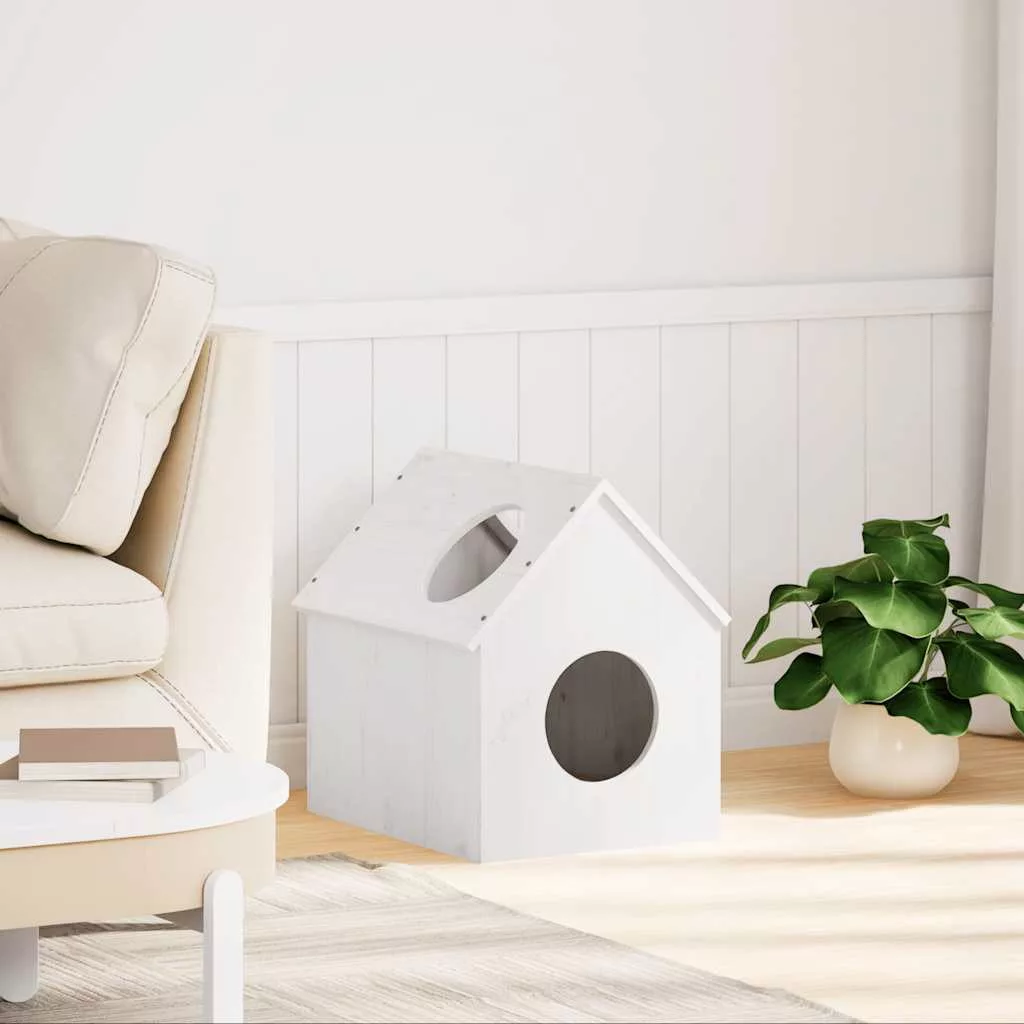 Macskaház fehér 41x50x50 cm tömör fa fenyőfa
