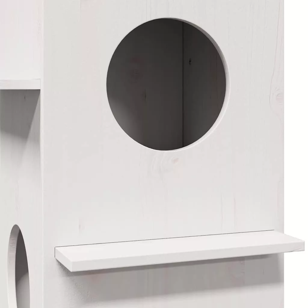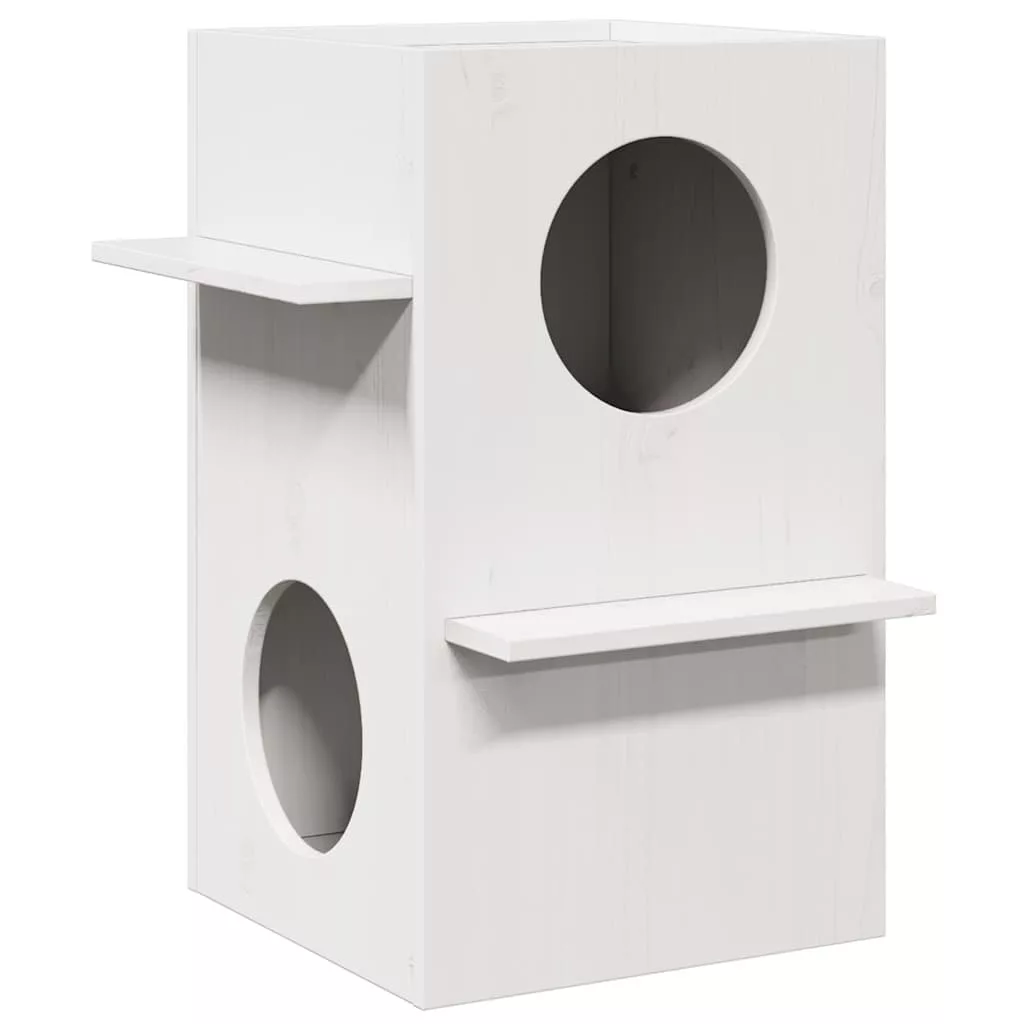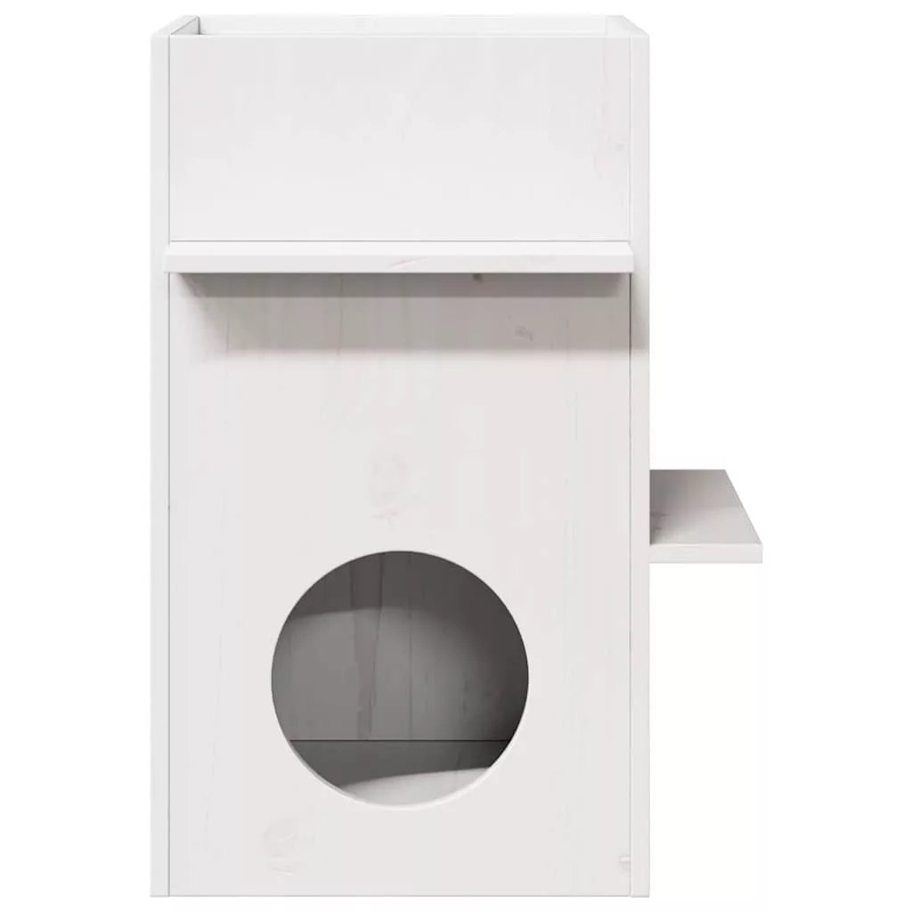 Macskaház fehér 43x43x60 cm tömör fa fenyőfa