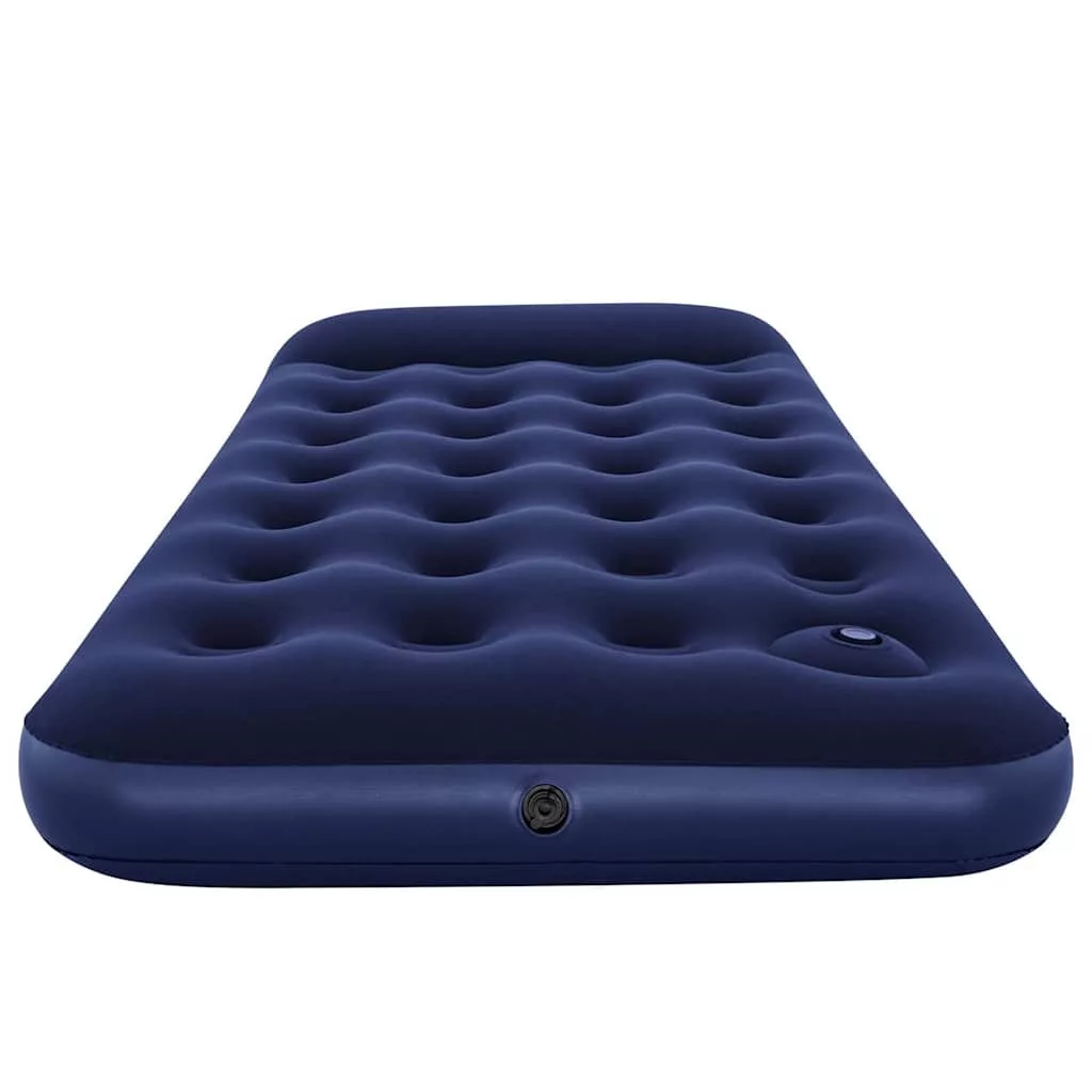 Ez a Bestway 67224 pelyhesített dupla gumimatrac 28 cm-re felfújható a beépített lábpumpával, ami kényelmesebbé teszi egy hagyományos gumimatracnál. Masszív bordázott vinil szerkezetének köszönhetően ez a matrac tökéletes kempingeléshez. A vízálló, pelyhesített felső réteg megakadályozza a lepedő csúszását, és kényelmesen feküdhet rajta. Ez a 188 cm hosszú, könnyen felfújható matrac kiváló éjszakai alvást nyújt a kempingeléskor is. A felfújható matrac kényelmes, beépített párnával rendelkezik. A matrac egy beépített lábpumpa segítségével gyorsan felfújható vagy leereszthető. Használaton kívül összehajtható, így tárolása és szállítása könnyű. Ezt a készüléket nem használhatják csökkent fizikai, érzékszervi vagy szellemi képességű, illetve tapasztalattal és tudással nem rendelkező személyek (beleértve a gyermekeket is), kivéve, ha a biztonságukért felelős személy felügyeli őket, vagy utasításokat kaptak a készülék használatára vonatkozóan.