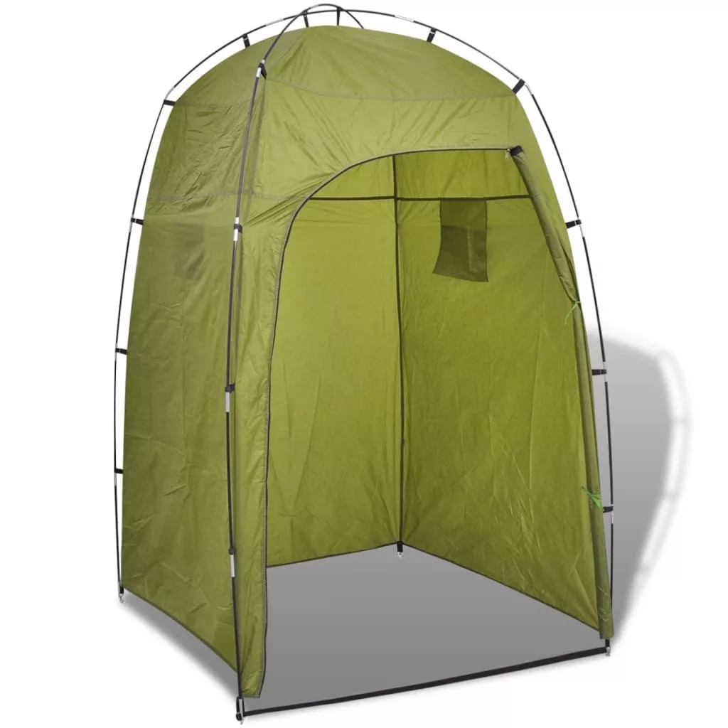 Ez a zuhanysátor ideális nyilvános helyeken, például parkokban, strandokon és kempingekben való használatra. Az üvegszálas rúddal megtámasztott öltözősátor tartós, stabil és praktikus. A WC-sátor fedett tetővel rendelkezik, hogy zuhanyozáskor vagy öltözködéskor nagyobb biztonságot nyújtson. Nagy, cipzáras ajtaja kényelmes bejáratot biztosít. A zuhanyházban két tárolórekesz található a sampon, tusfürdő vagy egyéb tárgyak tárolására. Padló nélküli kialakításának köszönhetően könnyebben tisztán tudja tartani a helyiséget. Használaton kívül ez a WC-ház is könnyen összecsukható a saját kompakt hordtáskájába. Megjegyzés:A sátrat ritka és rövid távú használatra tervezték (1. teljesítményszint). Bár esőállóak, ezeket a sátrakat inkább szép időben ajánlottak használni. A termék nem alkalmas olyan időjárási körülményekre, mint az erős szél, a hóesés, és a szélsőséges időjárási viszonyok.