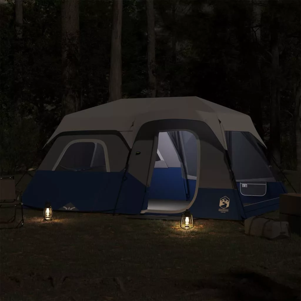 Ez a modern megjelenésű családi sátor megvéd a kellemetlen időjárástól, és kényelmes helyet biztosít a kalandokhoz. Teljesen vízálló kialakítás: Ez a kempingsátor, amely poliészterből készült poliuretán bevonattal, víz- és szélálló. A ragasztott varratok hatékonyan megakadályozzák az esővíz beszivárgását, a nagy teherbírású sátoralj pedig elősegíti, hogy a belső tér száraz és kényelmes maradjon.Gyorskioldó rendszer: A gyorskioldó rendszerrel könnyedén felállíthatja a sátrat! Fektesse le a sátrat, helyezze egymásba az előre összeszerelt rudakat, amíg a helyükre nem kattannak, és már kész is!LED-es világítás: Ennek a sátornak a mennyezeti rúdjain LED-lámpák vannak három fényerő-beállítással: magas, alacsony, és éjszakai fény. Tápbankról vagy 4D elemről is működnek (egyik sem tartozék). A fényt áteresztő szövet egyenletes megvilágítást biztosít az egész sátorban, hangulatos és jól megvilágított környezetet teremtve minden kempinges kalandhoz.Kényelmesen hozzáférhető elektromos vezetékek: Az E-Portnak köszönhetően egyszerűen csatlakoztathat a sátorhoz egy külső áramforrásból származó hosszabbítót.Levehető esővédő: A levehető esővédő a sátor tetejére rögzíthető az időjárás elleni védelem és a magánélet védelme érdekében. Figyelem:Tartson távol minden láng- és hőforrást ettől a termékszövettől. A termék nem alkalmas olyan időjárási körülményekre, mint az erős szél, a hóesés és a szélsőséges időjárás. Ez a termék DC 5V-ról működik, de a tanúsított 5V-os USB-tápforrást nem tartalmazza. A magasabb feszültség túlmelegedést okozhat, ami a készülék károsodását, valamint a túlmelegedés és a tűz esetleges kockázatát okozhatja.