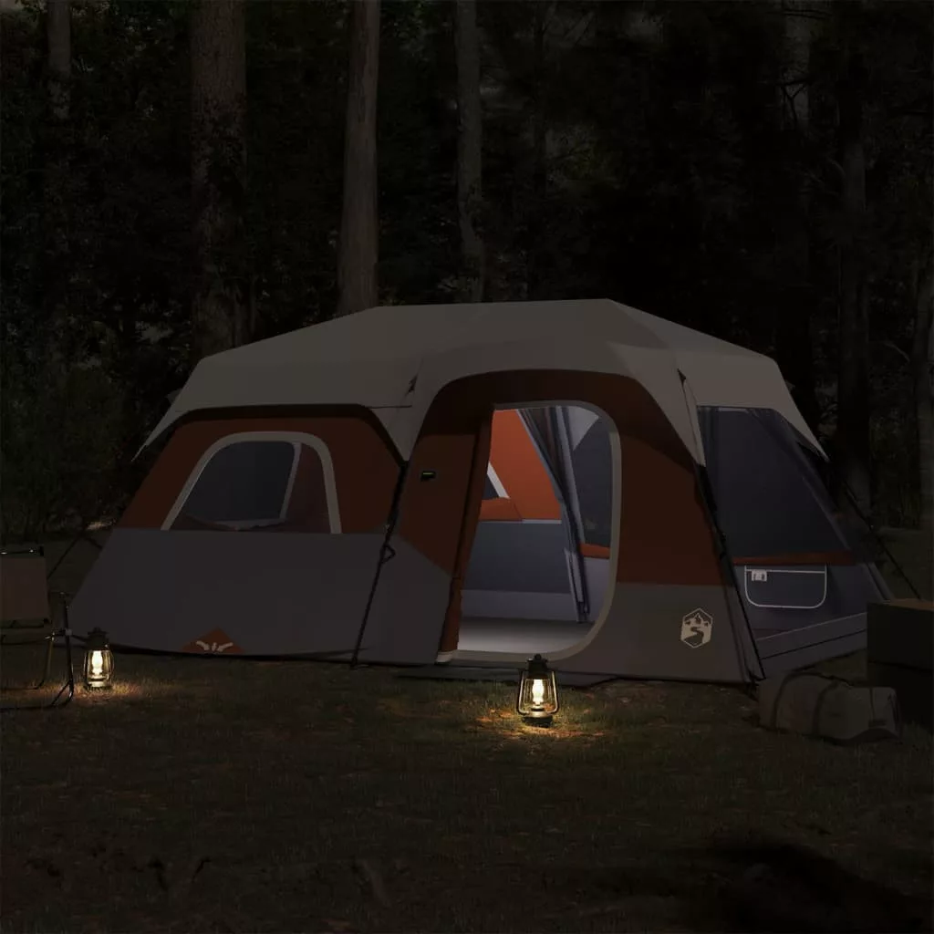 9 személyes szürke-narancs LED-es felugró családi sátor