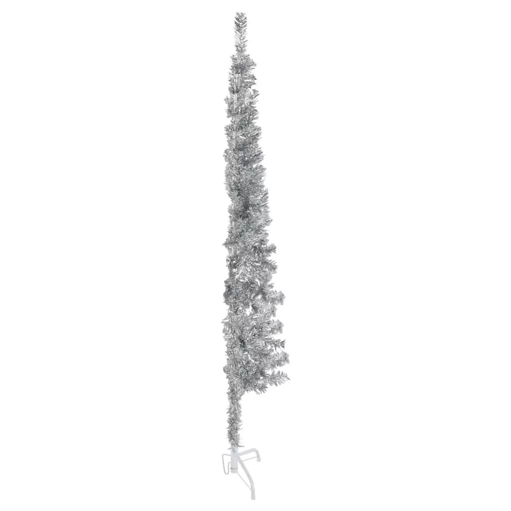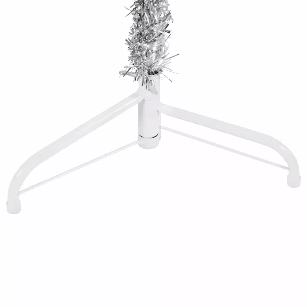 ezüst vékony fél műkarácsonyfa állvánnyal 150 cm