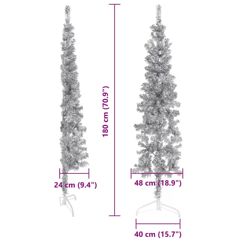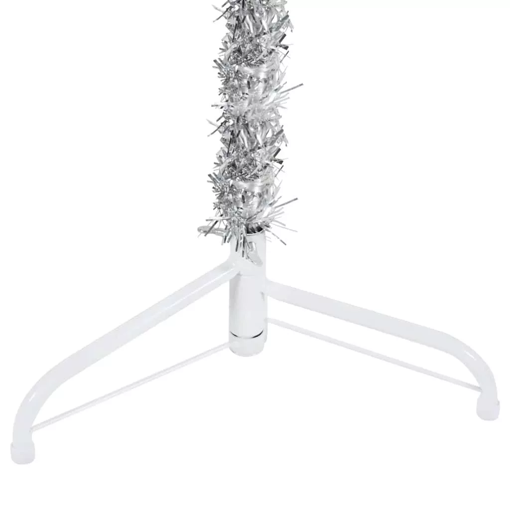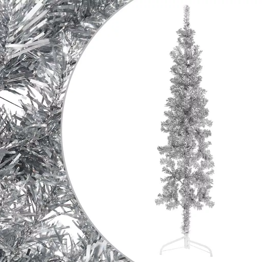 ezüst vékony fél műkarácsonyfa állvánnyal 180 cm