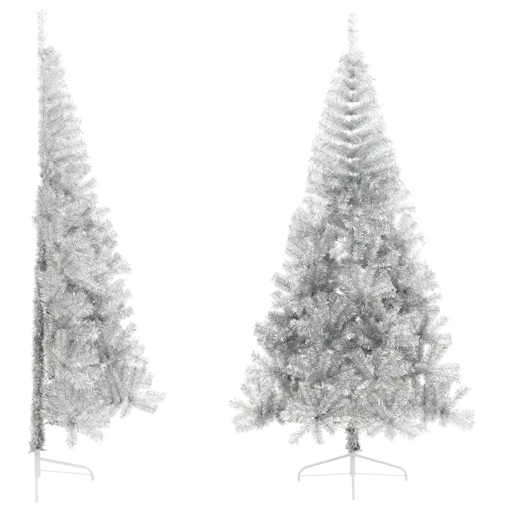 ezüstszínű PET fél műkarácsonyfa állvánnyal 240 cm