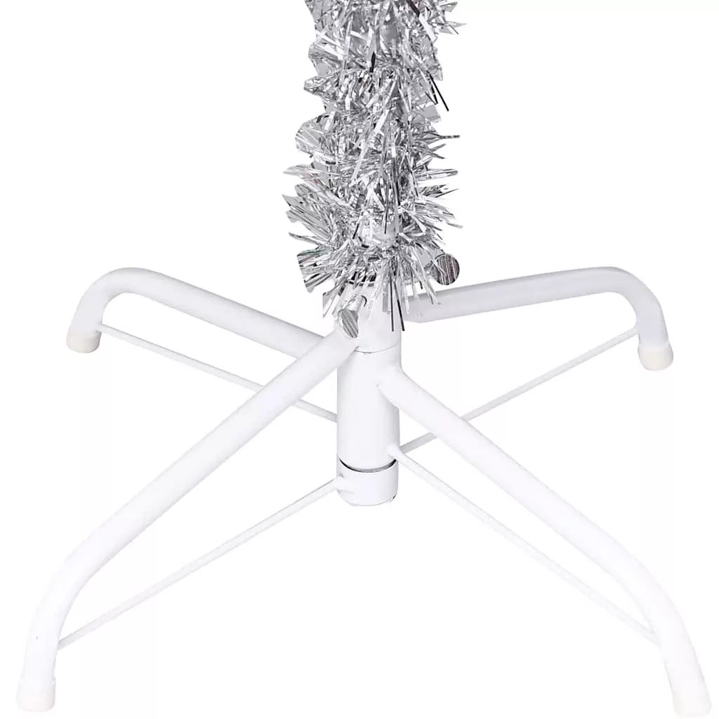 ezüstszínű PET megvilágított műkarácsonyfa gömb szettel 120 cm