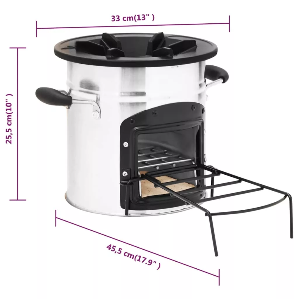 ezüstszínű acél fatüzelésű kempingtűzhely 45,5 x 33 x 25,5 cm