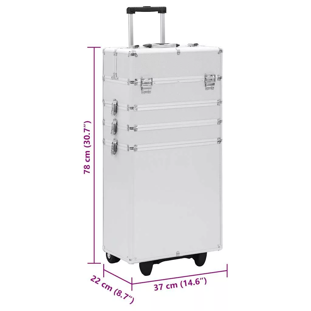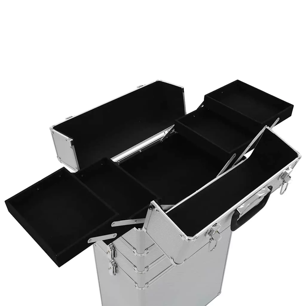 Sminkbőröndünk ideális megoldást biztosít kozmetikai szerei rendezetten tartására. Egyszerűen csak pakoljon be minden szükséges dolgot ebbe a kozmetikai táskába és vigye magával! Ez a fából, alumíniumból és ABS bevonattal készült sminkbőrönd egyszerű megoldást biztosít kozmetikai szerei tárolására és tökéletes állapotban való megőrzésére. Ez a sminkbőrönd 4 polccal és a felső részben kihúzható tálcákkal lett felszerelve, melyek bőséges helyet biztosítanak kozmetikai és szépségápolási szerei számára. 4 levehető görgőkerékkel rendelkezik, melyek segítségével könnyen mozgatható és bárhová magával vihető.