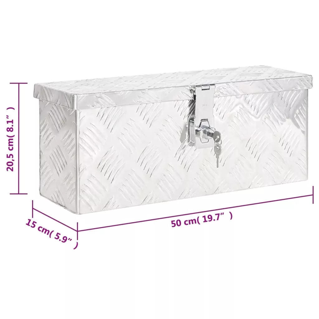 ezüstszínű alumínium tárolóláda 50 x 15 x 20,5 cm