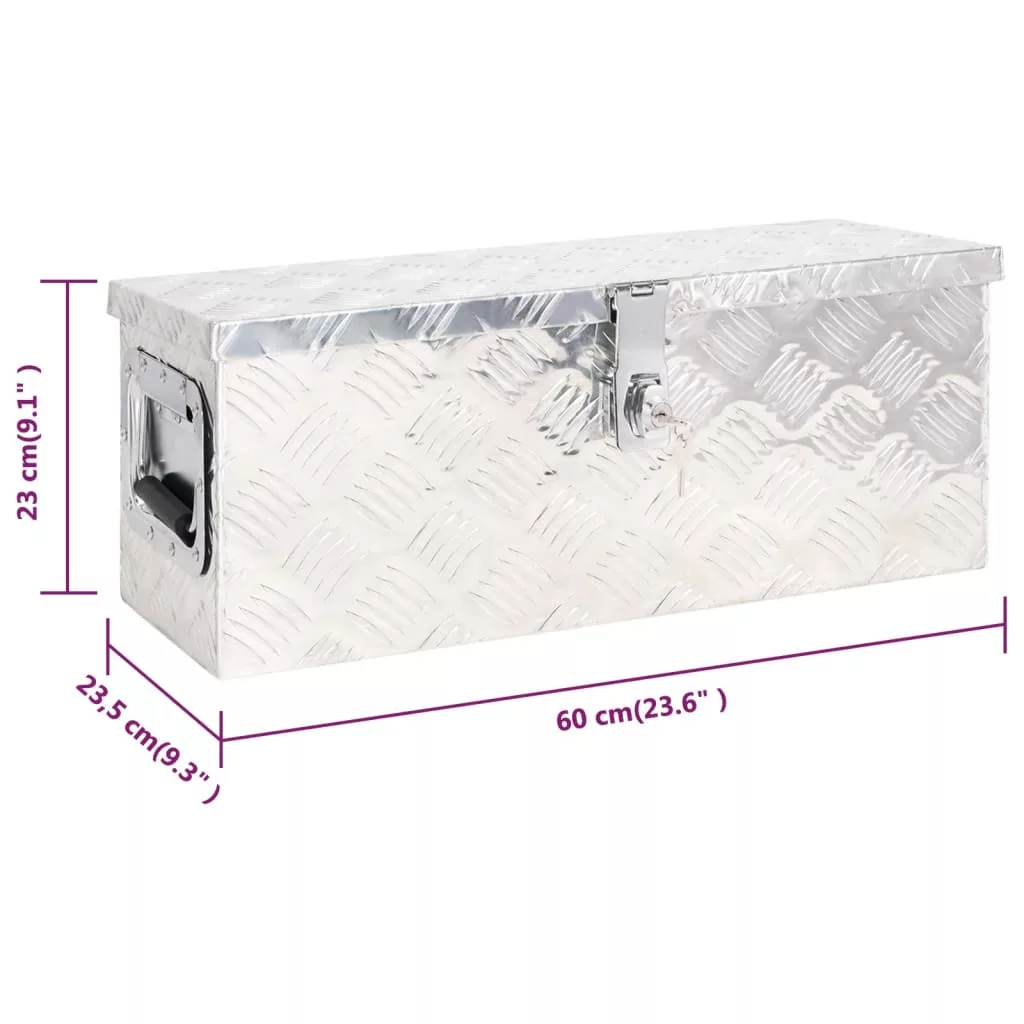 ezüstszínű alumínium tárolóláda 60 x 23,5 x 23 cm