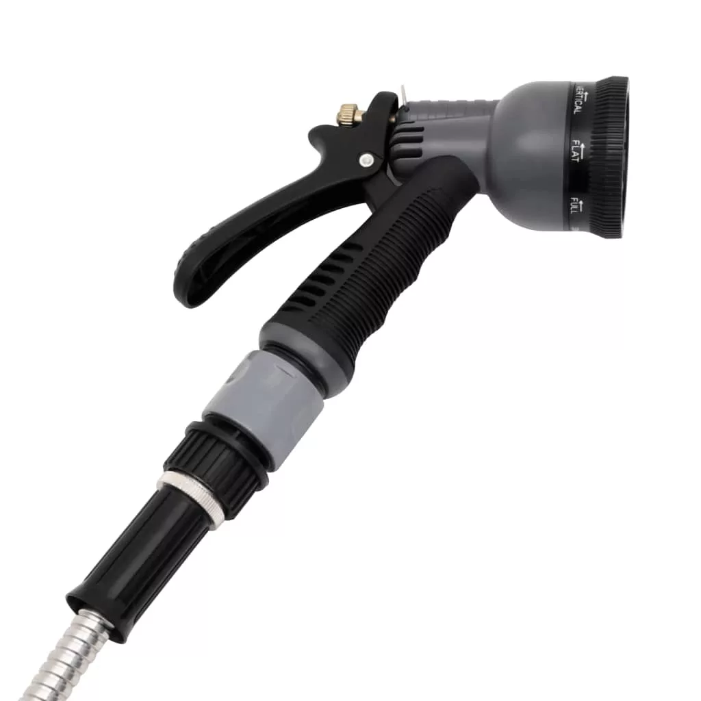 ezüstszínű rozsdamentes acél kerti tömlő szórófejjel 0,6 22,5m"