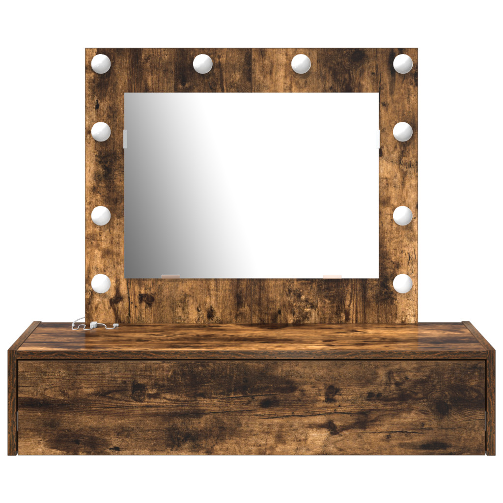 A vidaXL fali piperasztal LED világítással az esztétika és a praktikum tökéletes keveréke. Kiváló kiegészítője bármilyen modern hálószobának vagy szépségápolási területnek. A gyönyörű füstölt tölgy dizájn és a letisztult vonalak nemcsak szépek, hanem mindent megadnak, amire szükséged van a napi szépségápolási rutinodhoz. A beépített LED világítás világosabbá varázsolja a helyet, így jobban láthatod a szépségápolást. A tágas fiók segít rendben tartani a dolgokat, elrejtve a kozmetikumokat és kiegészítőket. A ezüst tükör jól visszaadja a fényt, tiszta képet ad és jó hangulatot teremt a szobában. A minőségi tömör tölgyfából készült piperasztal nemcsak szép, hanem tartós is. 83 cm hosszú, 40 cm széles és 70 cm magas, ami bőséges helyet ad a modern dizájn mellett, jól illeszkedik a különböző szobastílusokhoz. Kérjük, vegye figyelembe, hogy csak tanúsított DC 5V bemenetet használjon. A magasabb feszültség túlmelegedést okozhat, és károsíthatja a készüléket, valamint túlhevülés és tűz kockázatát jelentheti. Ne csatlakoztassa ezt a terméket semmilyen más tápegységhez, mint amit a kézikönyvben, a névtáblán vagy a vidaXL kifejezetten ajánlott. Ezt a készüléket nem használhatják 14 évesnél fiatalabb gyermekek, valamint csökkent fizikai, érzékszervi vagy mentális képességekkel rendelkező személyek, vagy elektronikai eszközök használatában tapasztalatlan vagy tudás nélküli személyek. Az elektromosság veszélyes. A nem megfelelő telepítés, használat vagy módosítás (egyedi alkatrészek cseréje) a készülék károsodásához vezethet, áramütést és veszélyt okozva a felhasználónak. Ne működtesse ezt a terméket robbanásveszélyes atmoszférában, például gyúlékony folyadékok, gázok és por jelenlétében, vagy 50 Celsius foknál magasabb hőmérsékleten. Ne kapcsolja be a terméket, ha a csatlakozó kábel vagy tápegység láthatóan sérült. Ha a lámpa külső hajlékony kábele vagy vezetékje sérült, azt kizárólag a gyártó vagy annak szervizügynöke, illetve hasonló képesítéssel rendelkező személy cserélheti ki, hogy elkerülje a veszélyt. A telepítés és karbantartás alatt kapcsolja ki az áramot. Győződjön meg arról, hogy a fényforrások lehűltek. Ennek a lámpatestnek a fényforrása nem cserélhető; ha a fényforrás elérte élettartamának végét, az egész lámpát ki kell cserélni. Csak belső használatra, ne használja kültéren.