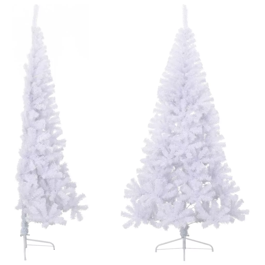 fehér PVC fél műkarácsonyfa állvánnyal 210 cm
